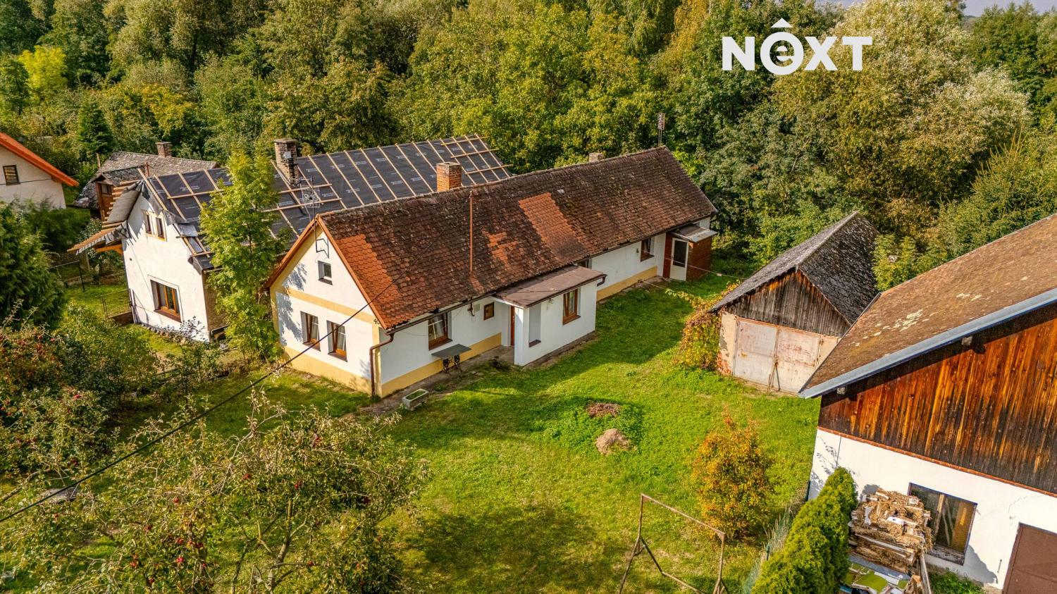 Na zahradě rostou vzrostlé jabloně a celý pozemek nabízí dobré možnosti parkování přímo u domu. Místo je klidné, vhodné pro rodiny s dětmi, kutily nebo jako chalupa pro víkendový odpočinek.