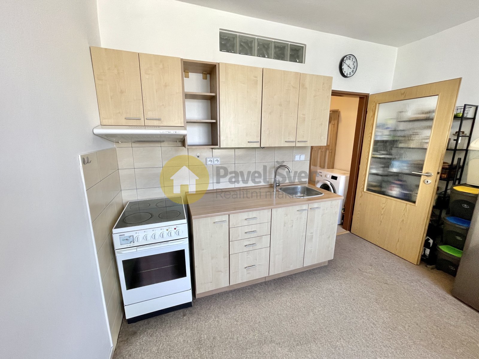 Vybaven kuchyňskou linkou s elektrickým sporákem, v koupelně sprchový kout, připojení na pračku v chodbě bytu.