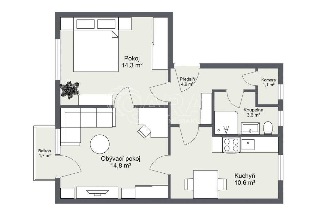 - Dispozice bytu: 2+1