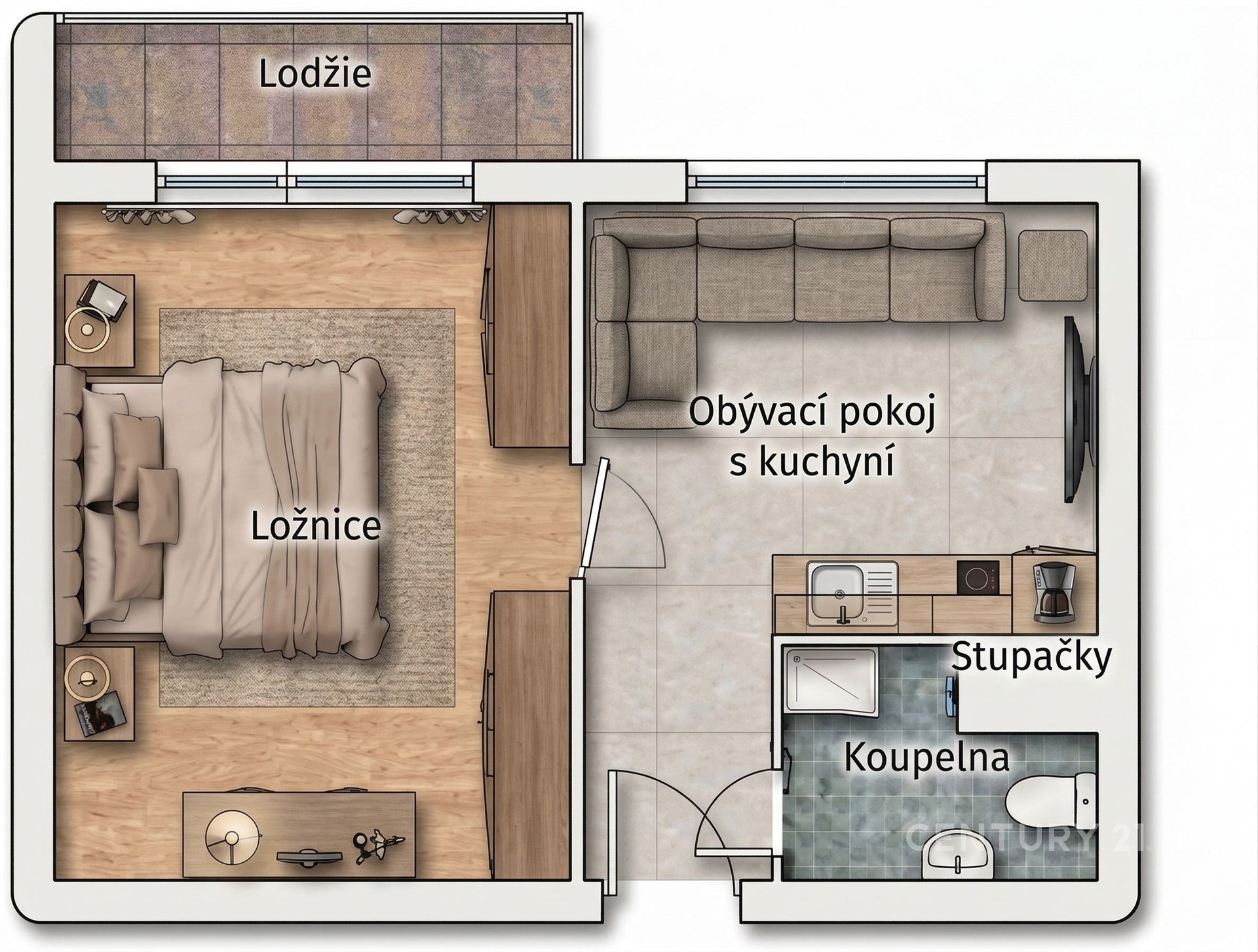 | Dispozice/podlahová plocha: | 2+kk/37 m² |