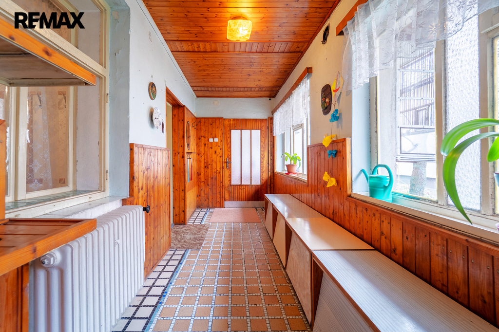 Na oploceném pozemku s vjezdem o celkové rozloze 336 m2 se nachází dům s verandou, garáží, dílnou, prádelnou a skladem. Po schodech se dostanete na terasu, která je přebudována a slouží, jako skleník. Skleník navazuje na velký půdní prostor vybízejícím k půdní vestavbě.
