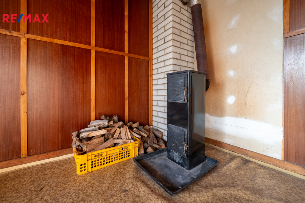 Z prostoru kuchyňky lze vejít do obytné místnosti kterou vede komín a jsou zde kamna na tuhá paliva, která vytápí objekt. Z této místnosti můžete vyjít dveřmi na balkon, který naskytne krásné výhledy do okolí, na přírodu a na obec Strání. Orientace je J-JZ.
