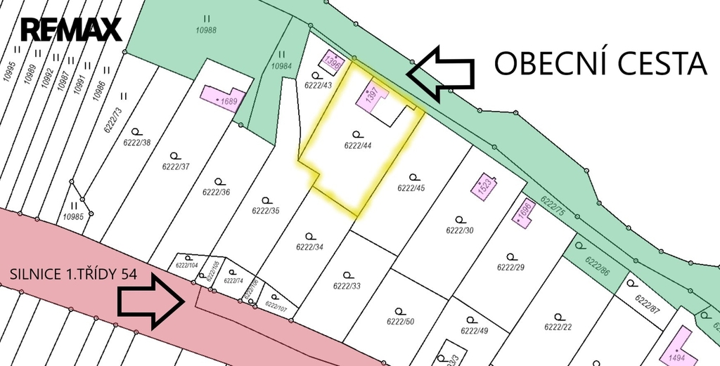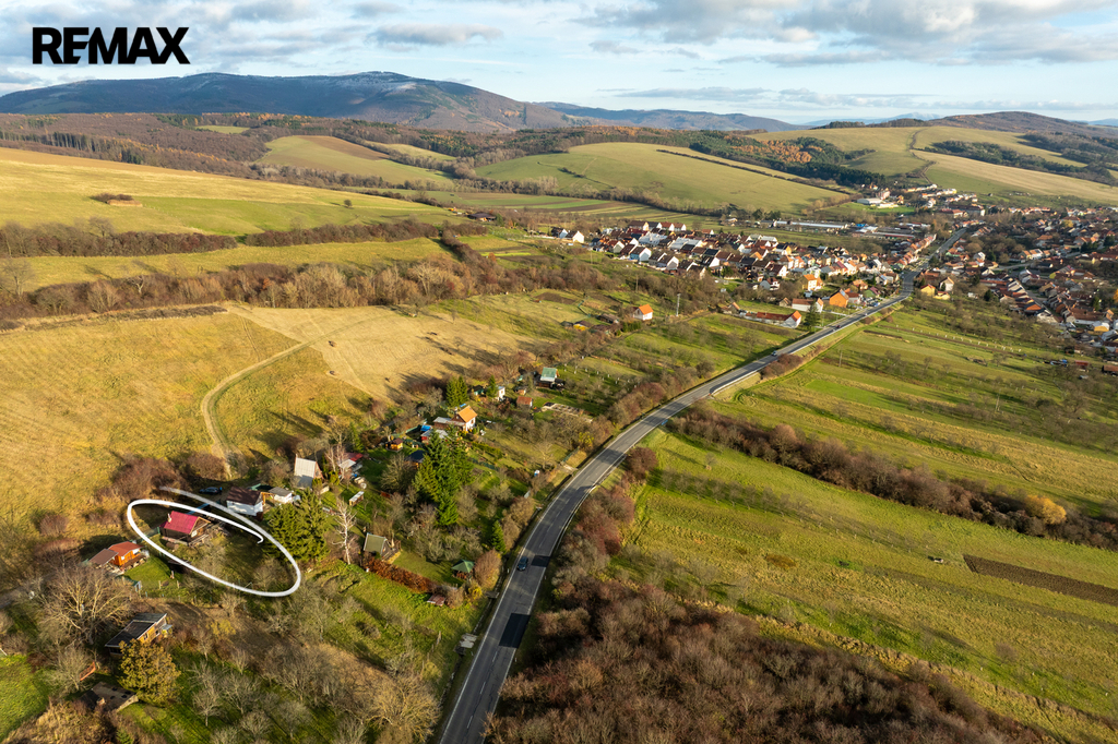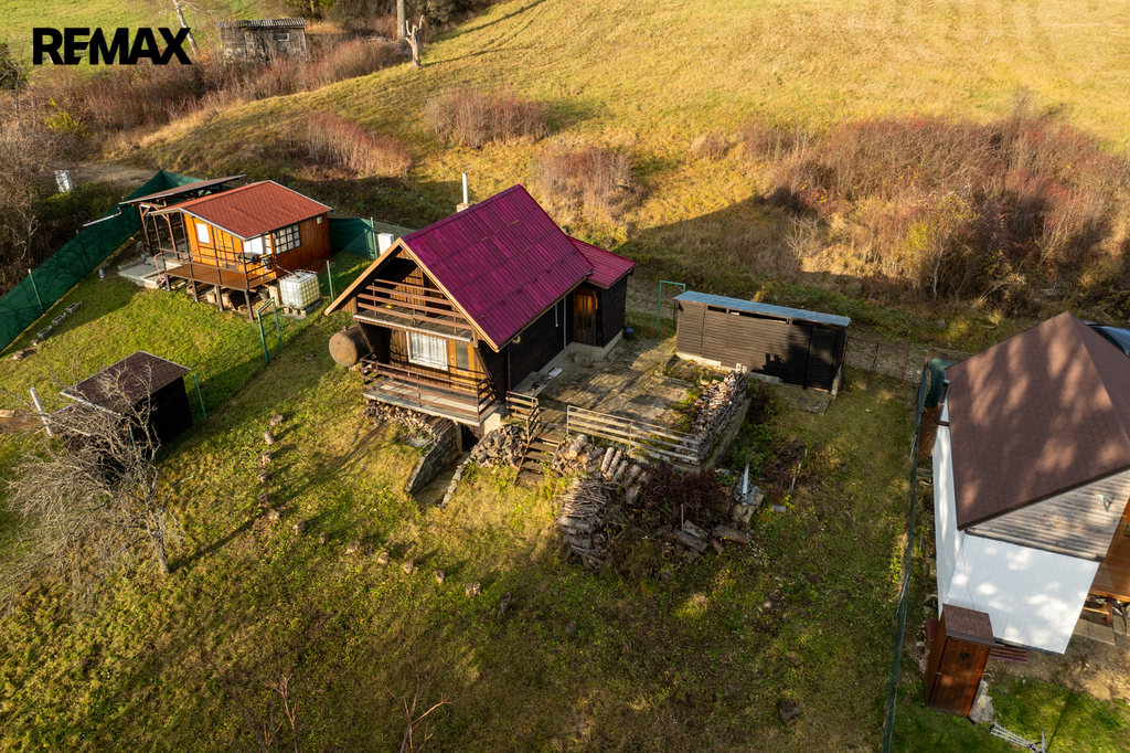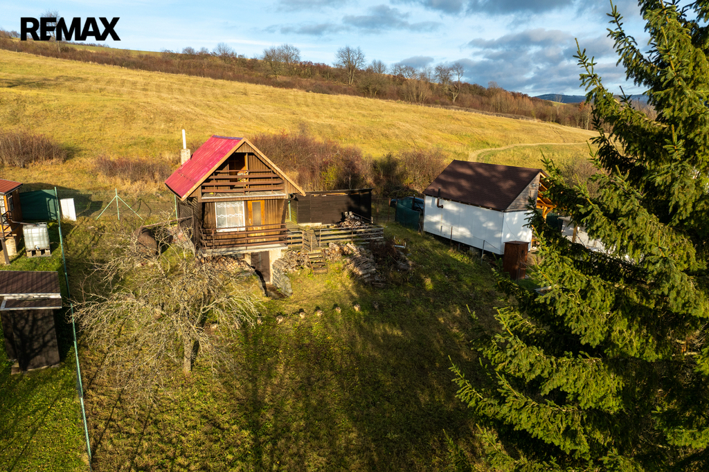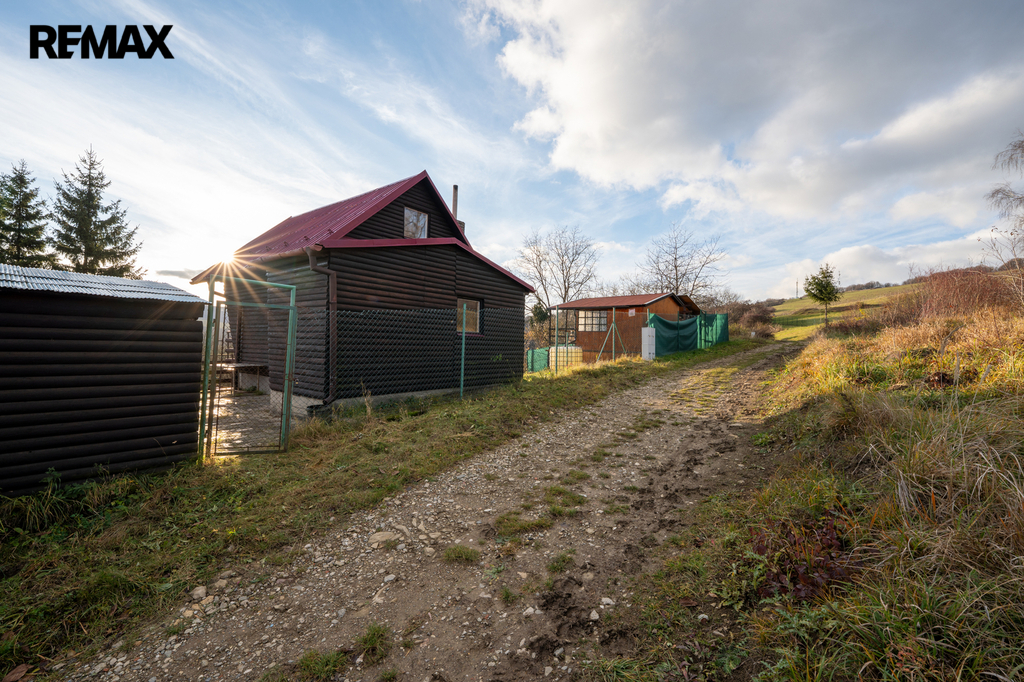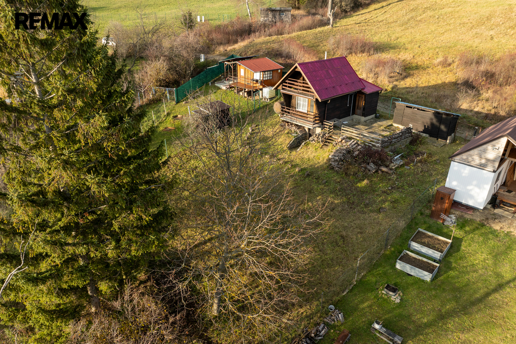 Celková plocha pozemku včetně zastavěné je 599m². Příjezd k chatě je zajištěn po obecní cestě.