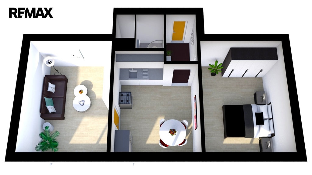 Dispozičně nabízí prostorný obývací pokoj, světlou kuchyň s novou linkou, pohodlnou ložnici a moderní koupelnu se sprchovým koutem a WC, vstupní chodbu.
