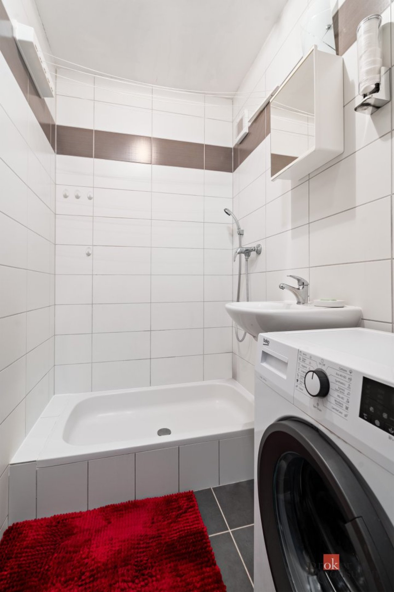 Interiér bytu je zařízen ve vyšším standardu – kvalitní materiály, designová kuchyňská linka včetně vestavěných spotřebičů, stylová koupelna a pečlivě řešené detaily, které vytváří příjemnou a komfortní atmosféru pro bydlení.