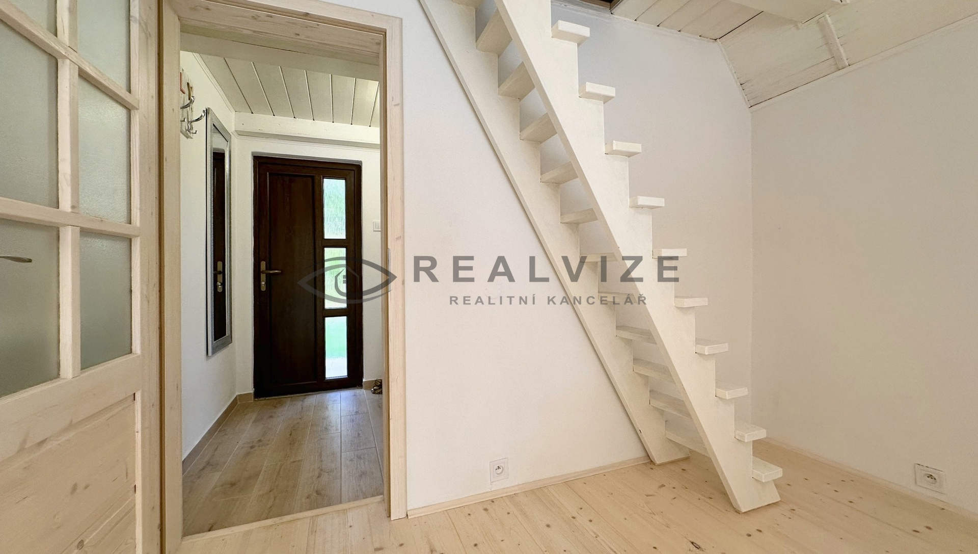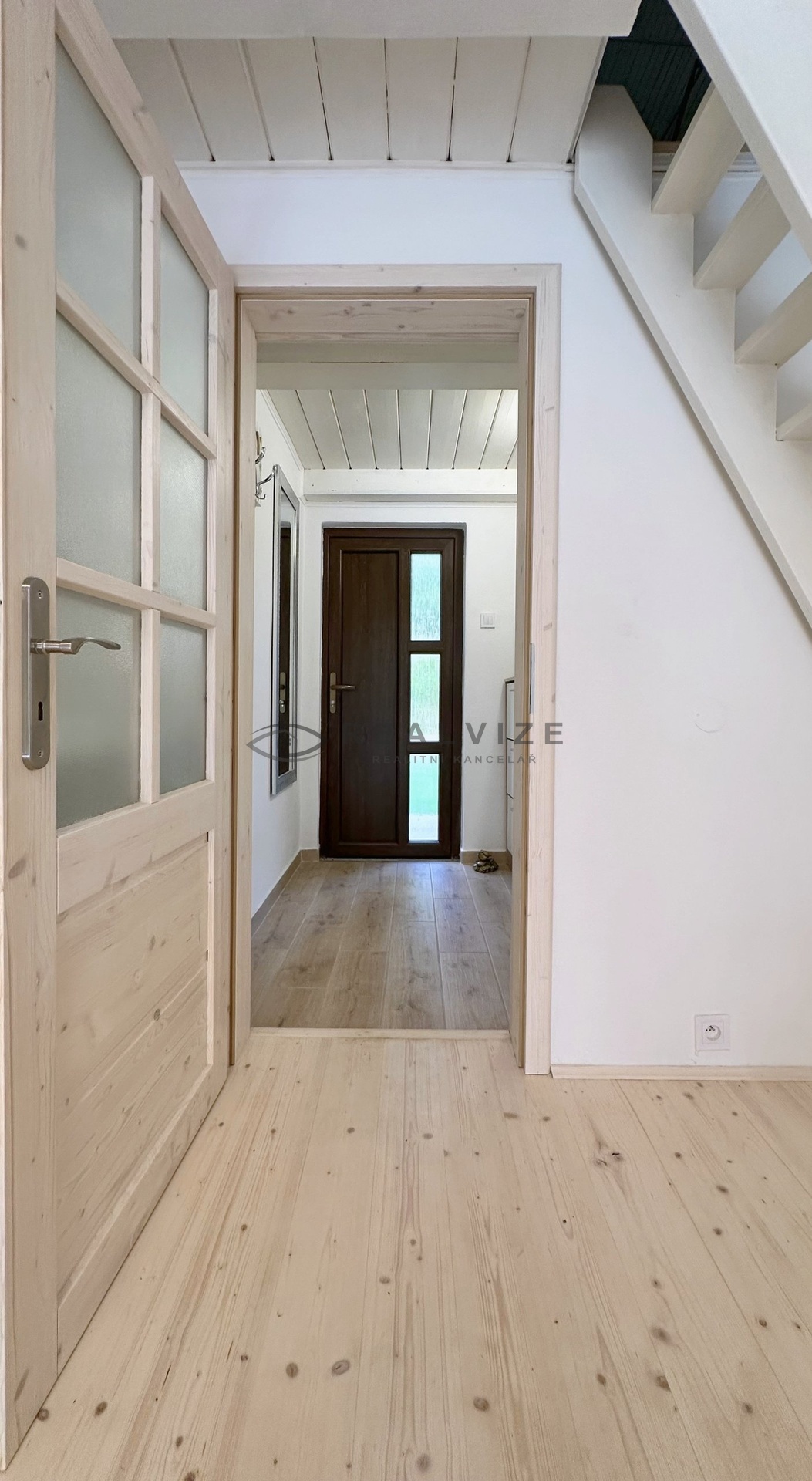 Chata je zrenovována velmi vkusně - vše laděno do světlých odstínů a dřeva.