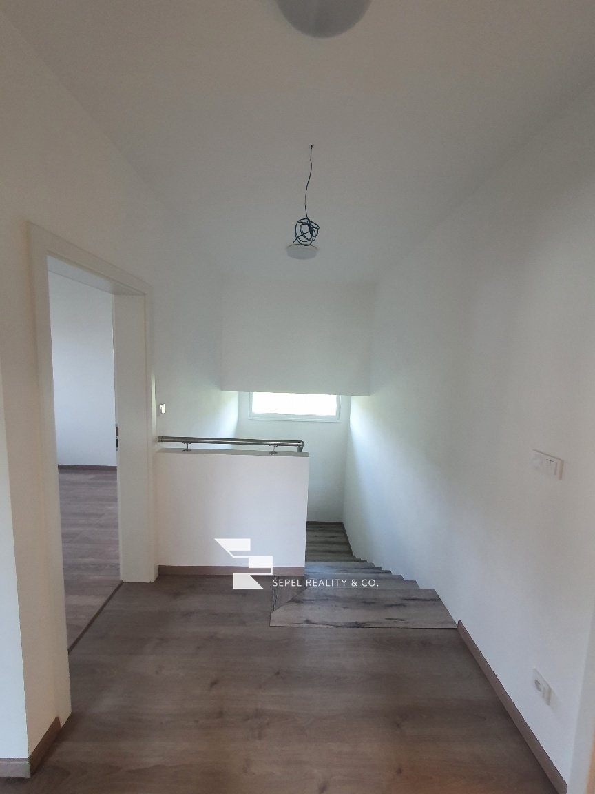 V patře jsou 3 samostatné pokoje, toaleta s umyvadlem a možností připojení pračky. Koupelna má sprchový kout.