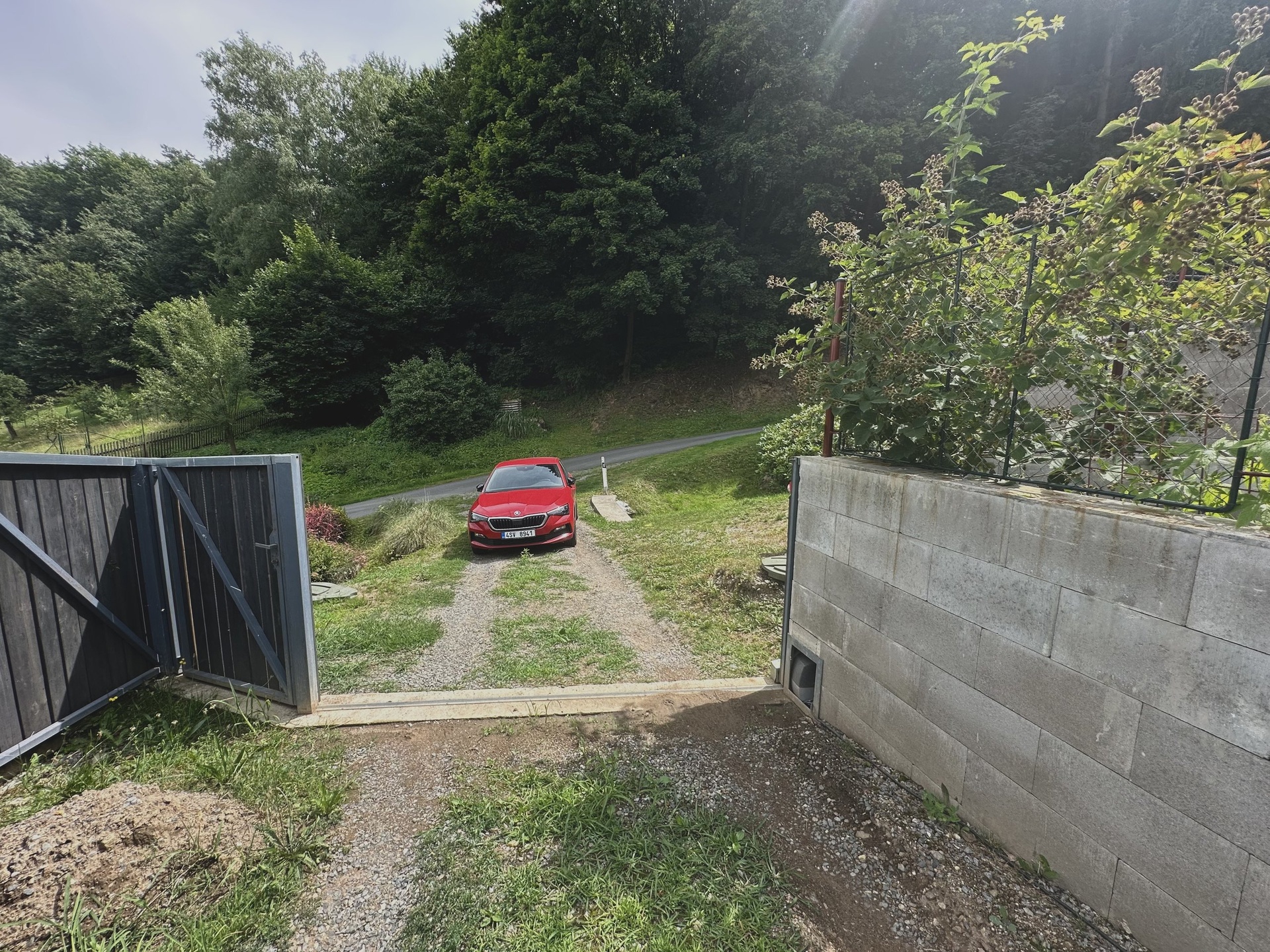 Chata je přístupná přímo na pozemek autem a parkování je možné i na zahradě. Automatická pojezdová vrata.