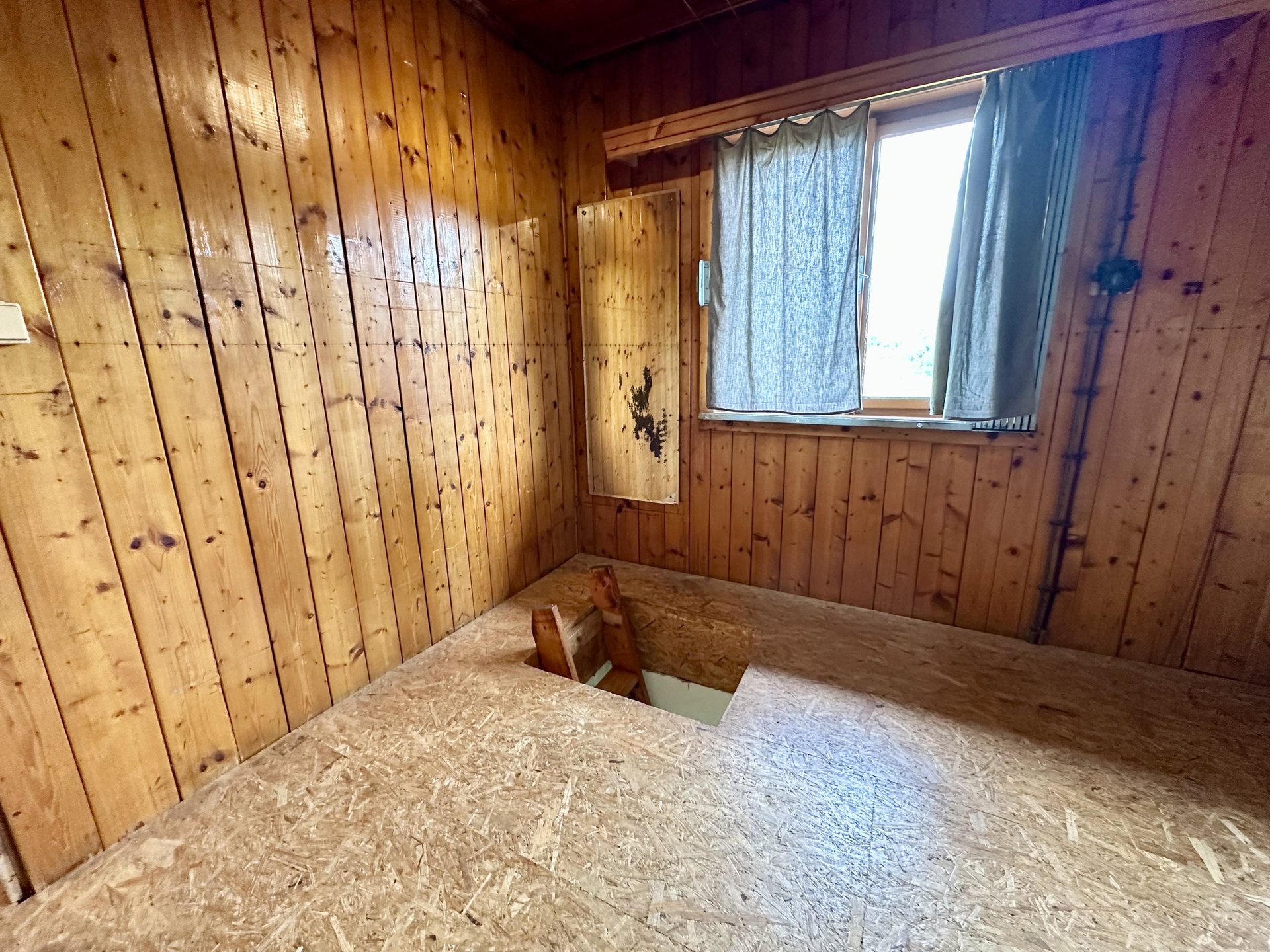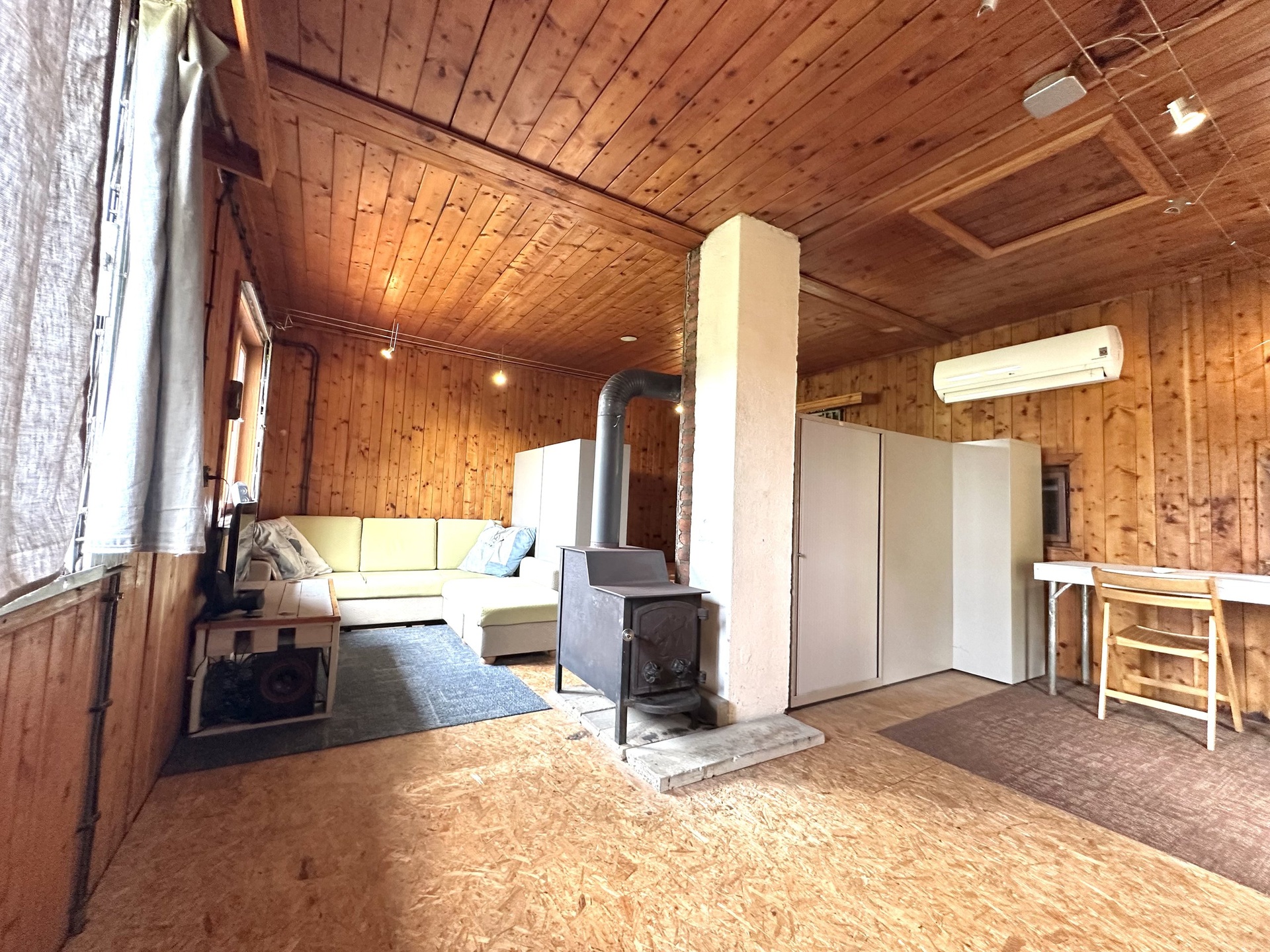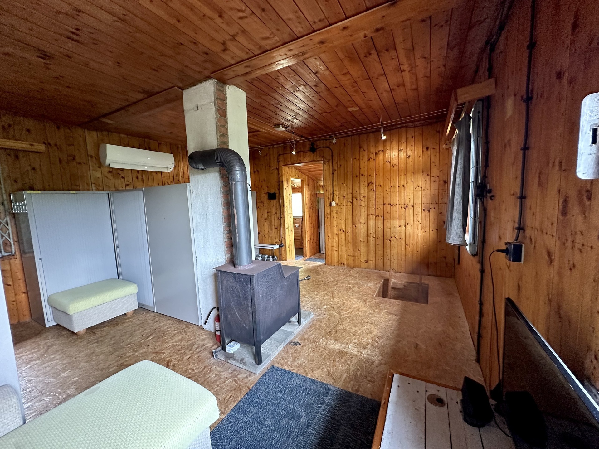 chata: v obytné části je velký pokoj s terasou a krásným výhledem do okolí, koupelna se sprchovým koutem a WC. Dřevěná okna s jednoduchým sklem. K vytápění v chladnějším počasí jsou používána litinová krbová kamna, jinak je možné využít tepelné čerpadlo-vzduch/vzduch, klimatizace. Do přízemí je samostatný venkovní vstup, nebo vnitřním dřevěný spojovacím žebříkem z hlavní místnosti. V přízemí je umístěná kuchyň a technická místnost s bojlerem na ohřev vody, přípojka na pračku. Rozvod vody je v plastu. Objekt má evidenční číslo a je napojen na elektřinu 230 i 380V, pitná voda je dovedena čerpadlem z vrtané studny, odpad sveden do jímky.