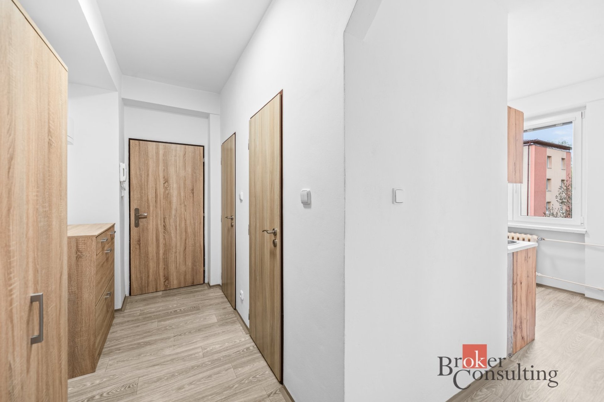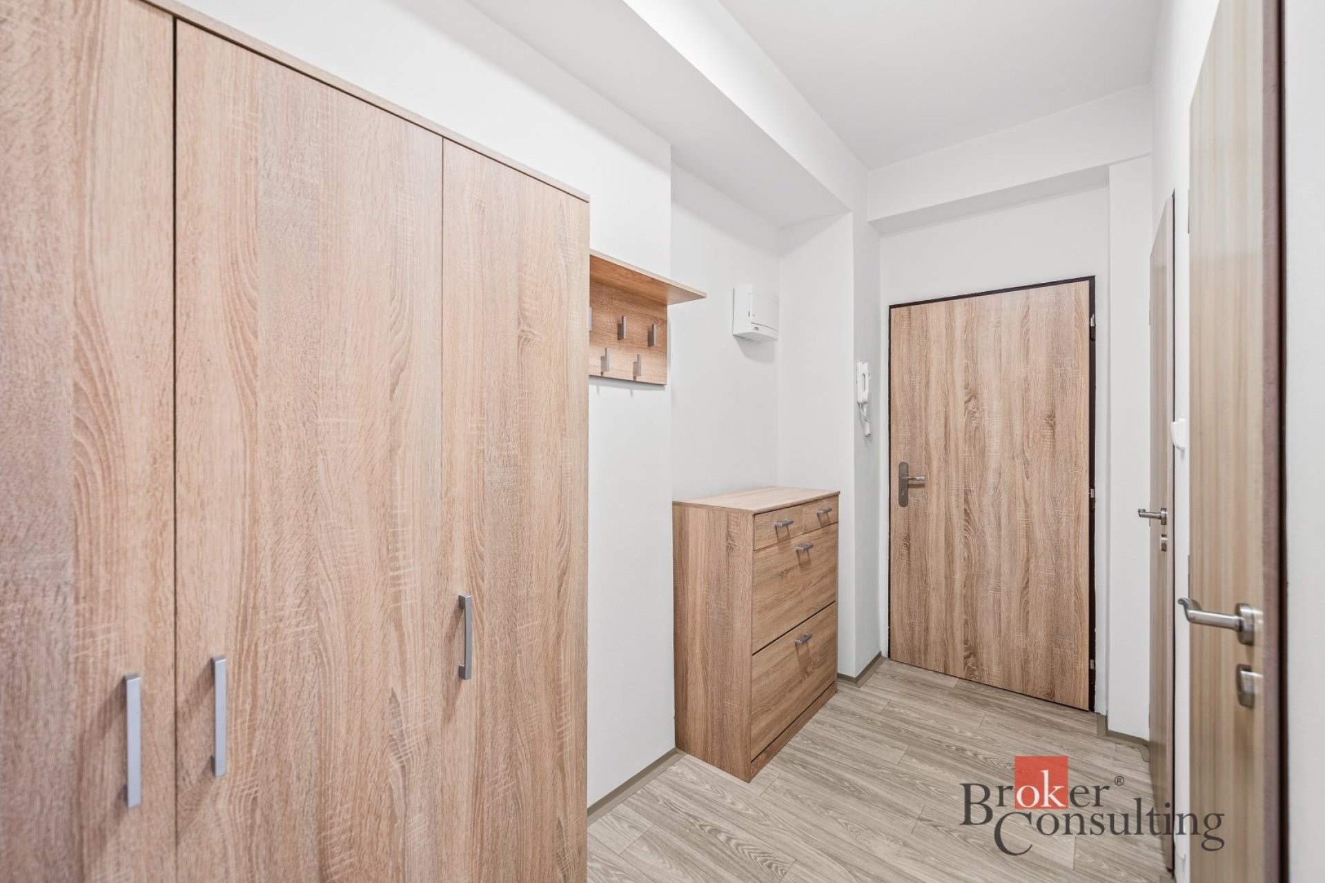 Byt je částečně vybaven a nabízí prakticky řešené úložné prostory. V ložnicové části je k dispozici šatní skříň, další úložné prvky se nachází v chodbě, kde je skříň na boty a věšák.