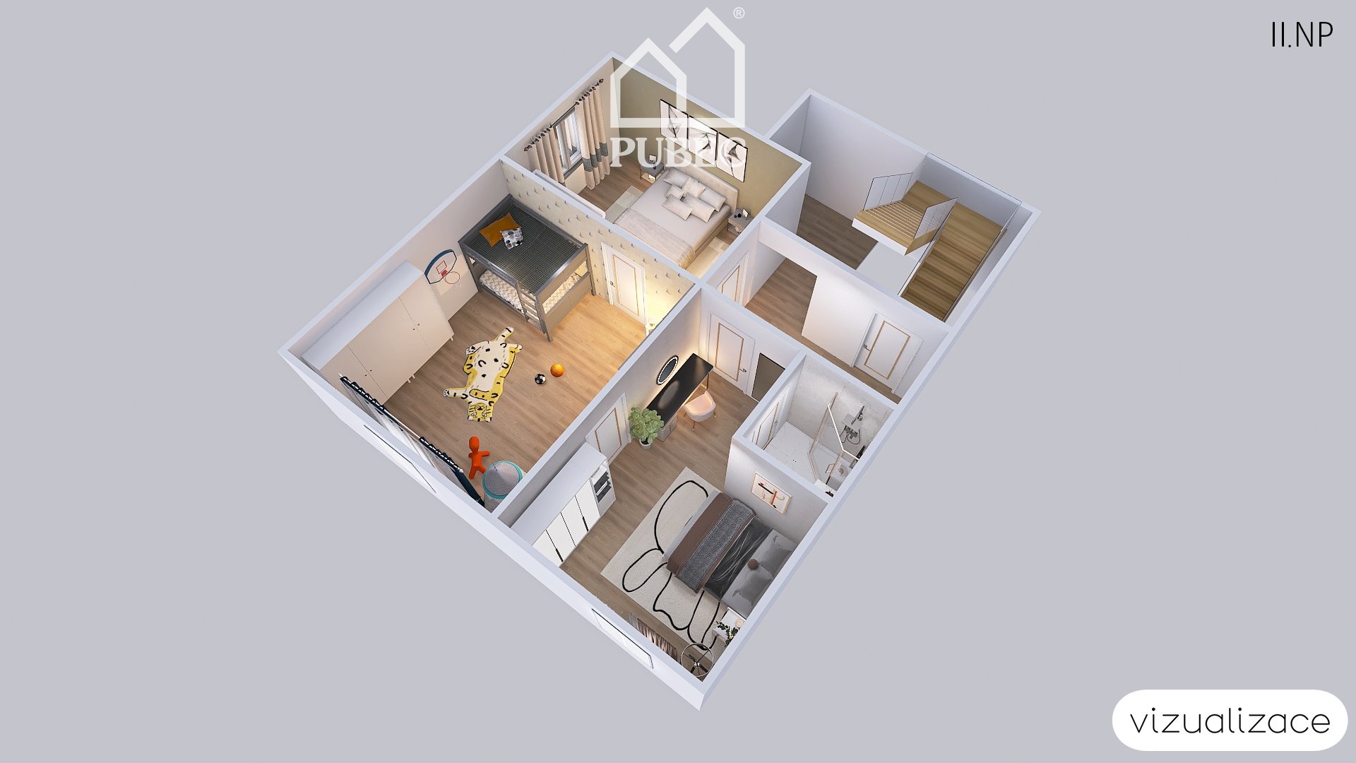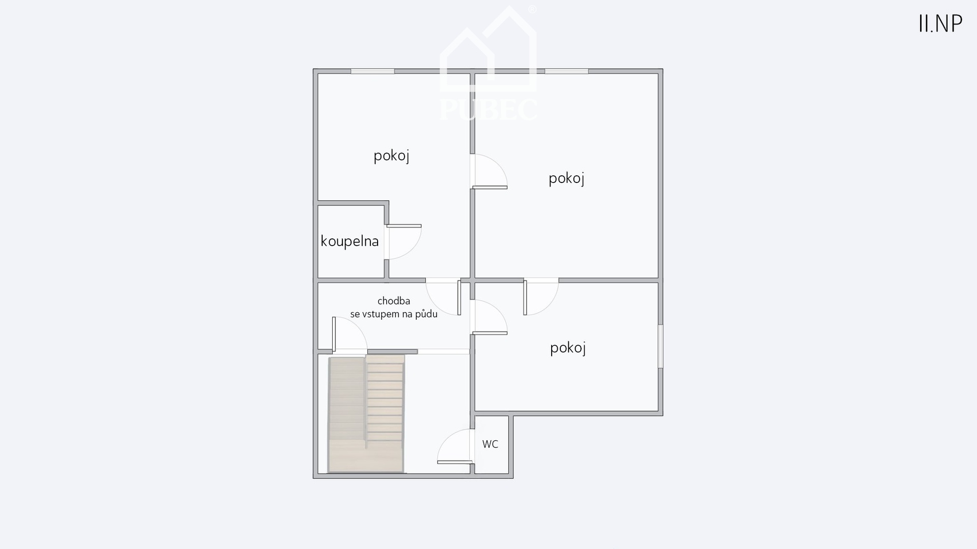 2. NP: 2+1, koupelna (WC v mezipatře)