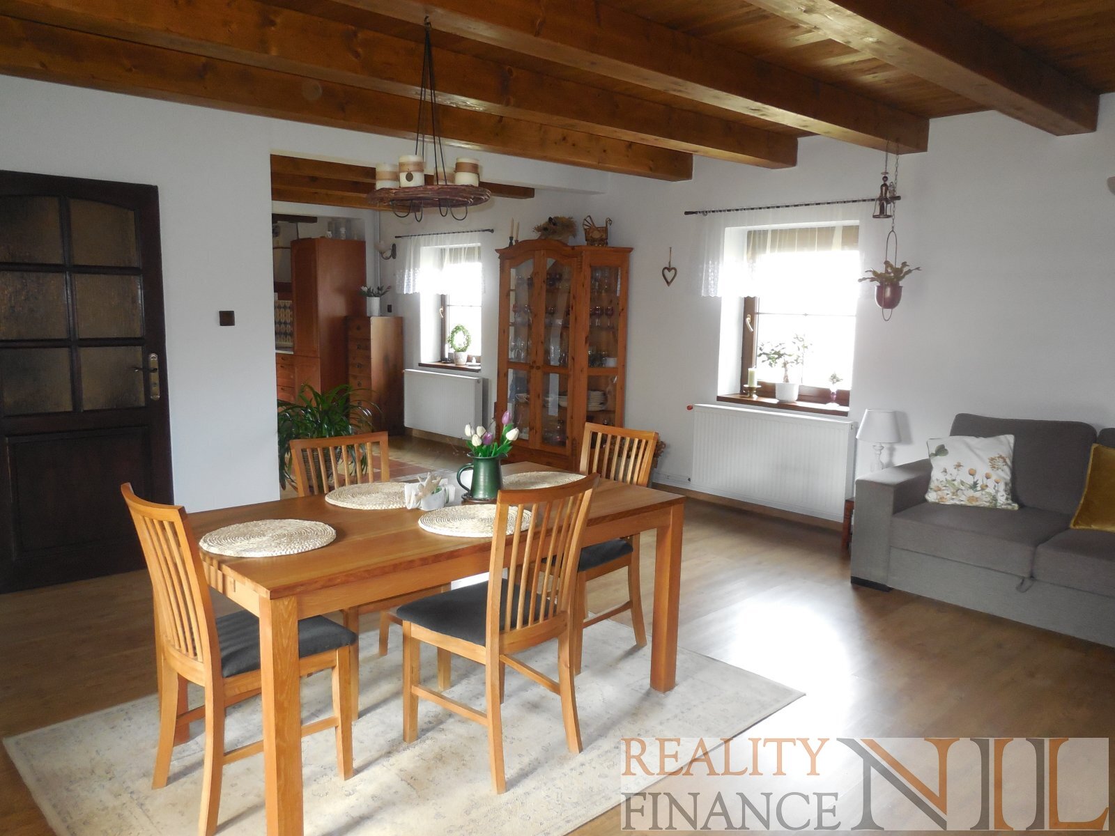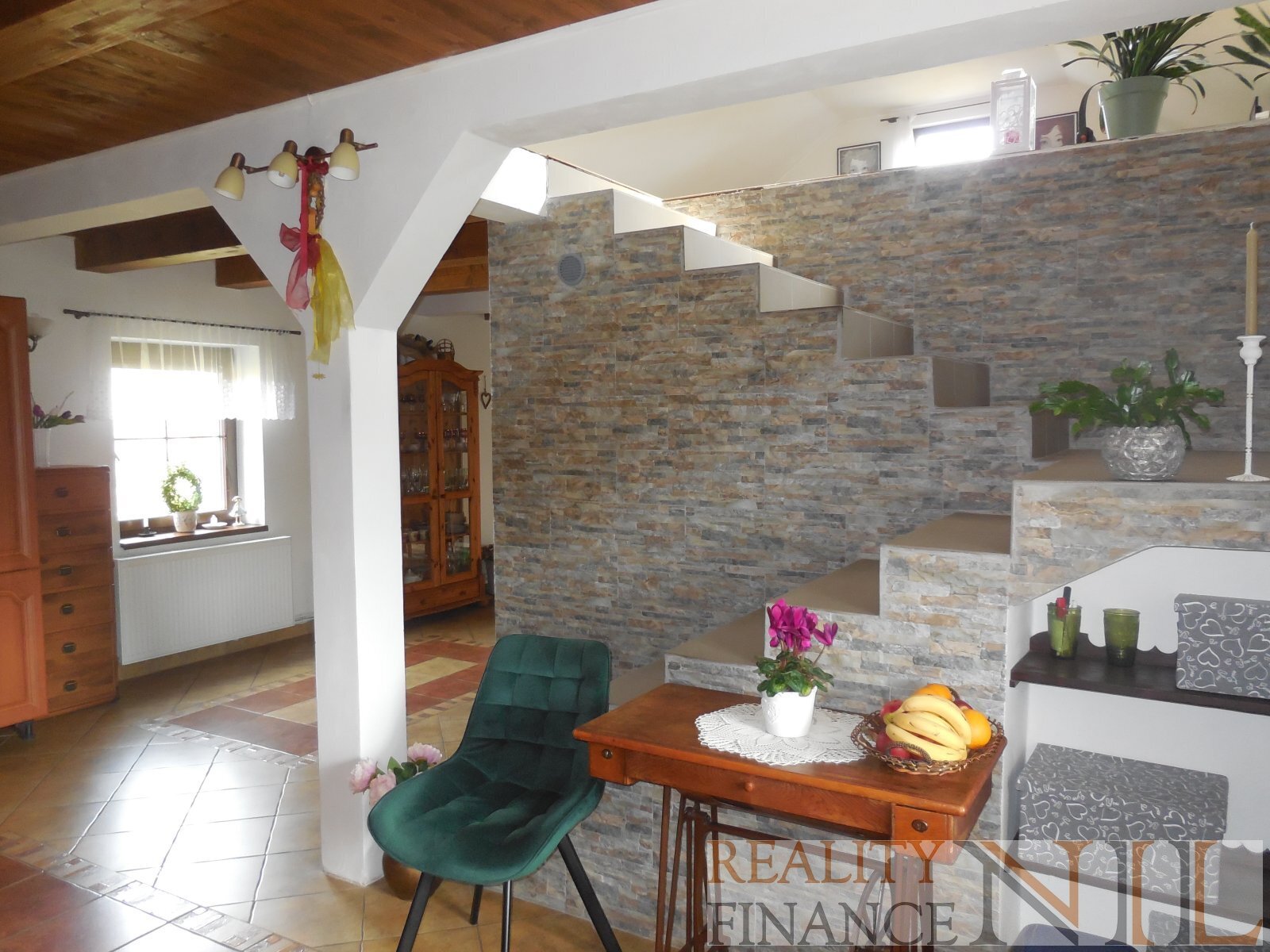 Dispozice: 1. nadzemní podlaží - zádveří, kuchyň s otevřeným vstupem do obývacího pokoje a otevřeným schodištěm do 2. nadzemního podlaží, spíž, chodba, koupelna s rohovou vanou, sprchovým koutem a WC, technická místnost s východem ven, sklad s možností využití i jako pracovna nebo hobby místnost