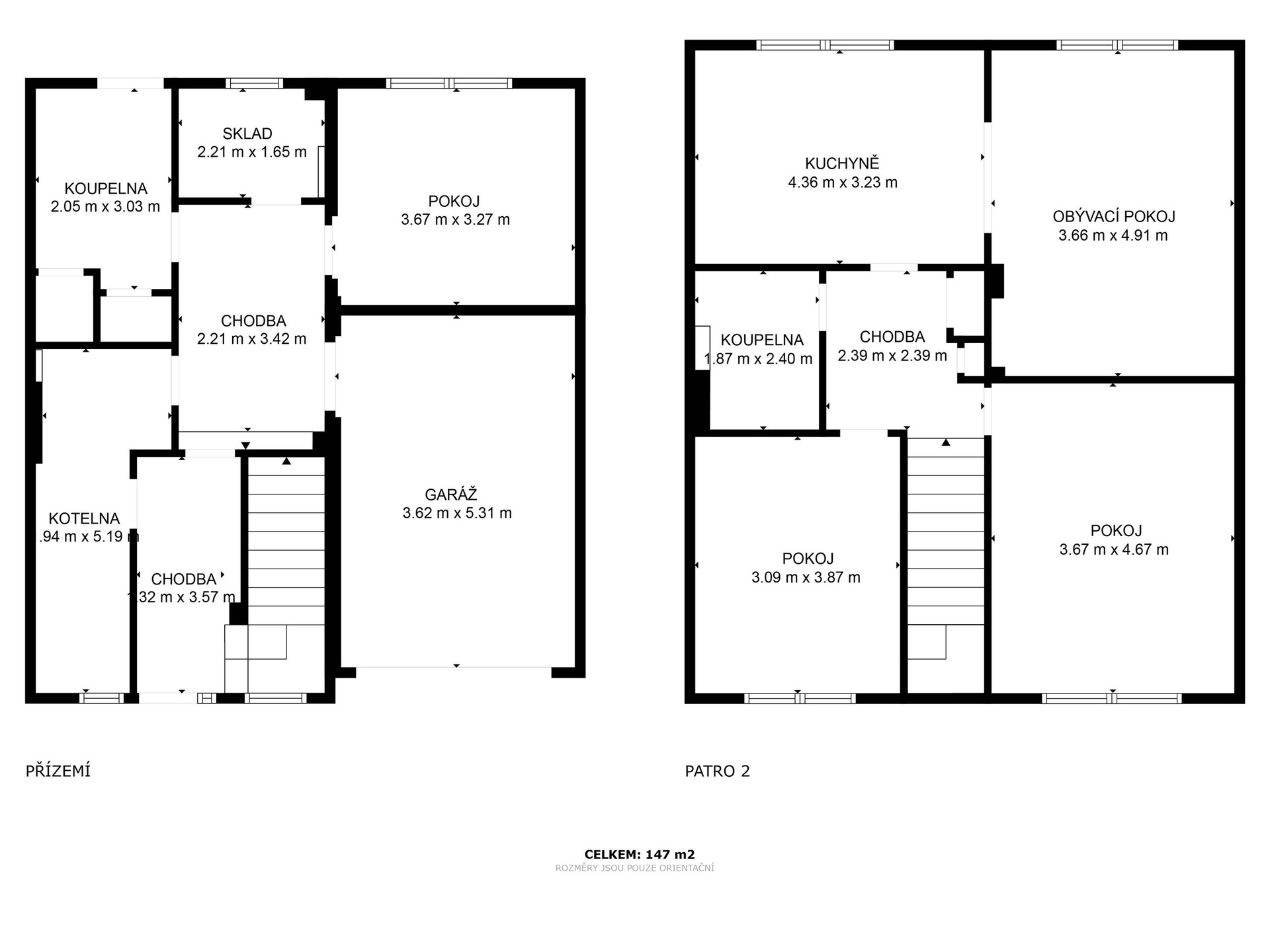 Dům má dispozici 4kk a na dvou podlažích nabízí užitnou plochu 147 m².