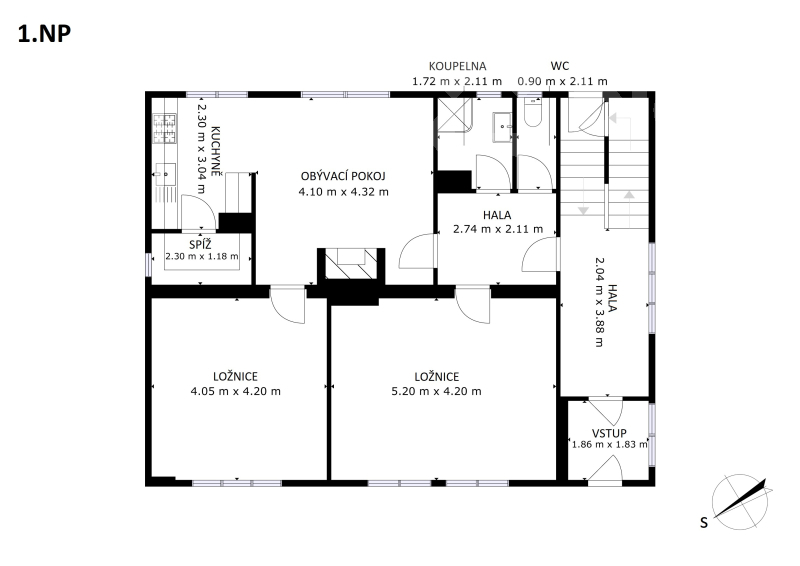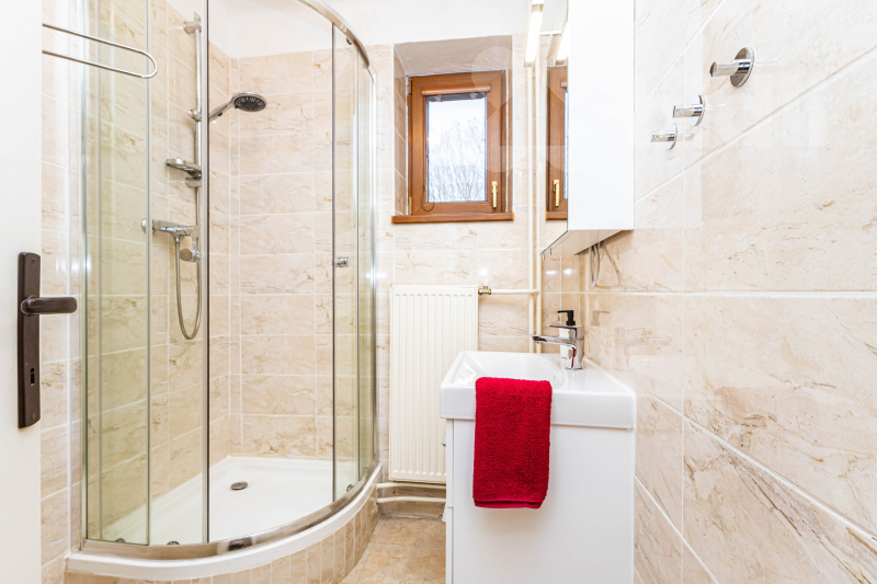 Přízemí tvoří obytná část s krbem propojená s kuchyní se spotřebiči, dále ložnice, pokoj, zrekonstruovaná koupelna, samostatná toaleta a praktická komora. V patře se nachází druhý byt s přípravou pro kuchyni, prostorným obývacím pokojem, ložnicí a dalšími dvěma pokoji, z nichž jeden může sloužit jako samostatný pokoj pro hosty. Koupelna je stejně jako v přízemí nová, nechybí předsíň ani komora. V podkroví se nachází další pokoj a půdní prostor připravený k uložení všeho potřebného.