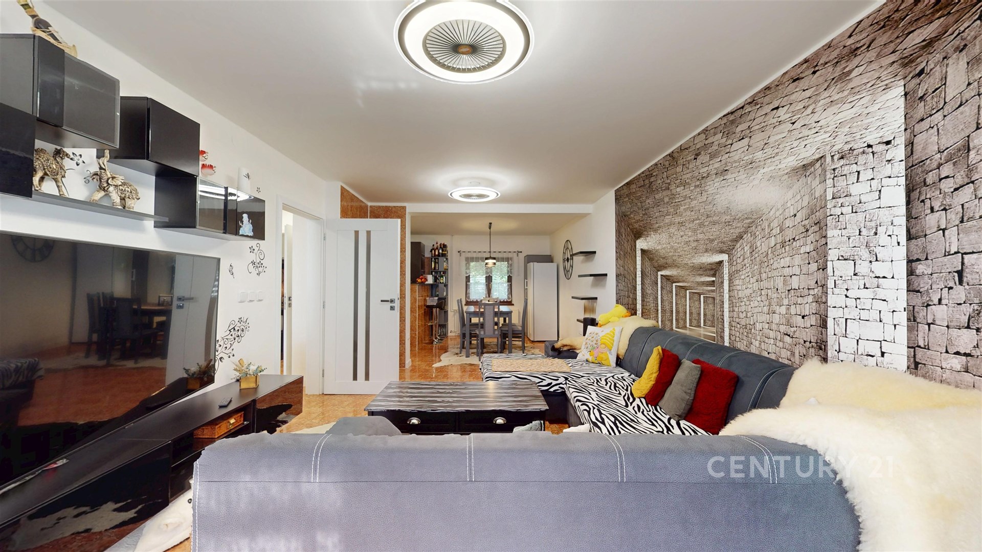 Obrovský obývací pokoj s kuchyňským koutem o 41 m², kde se celá rodina sejde ke společným chvílím.