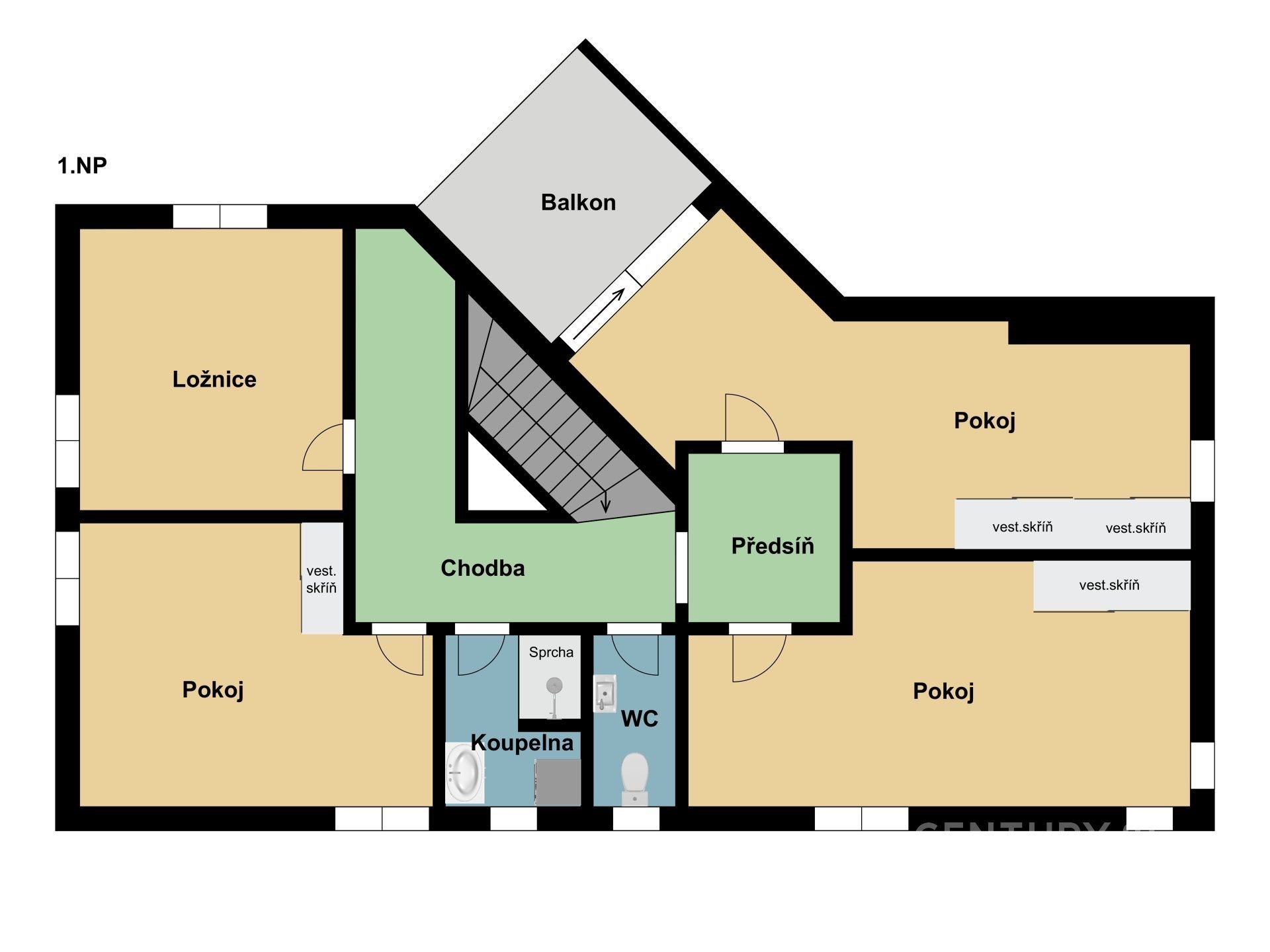 Balkón s výhledem přímo z ložnice – tvé soukromé místo pro ranní kávu.