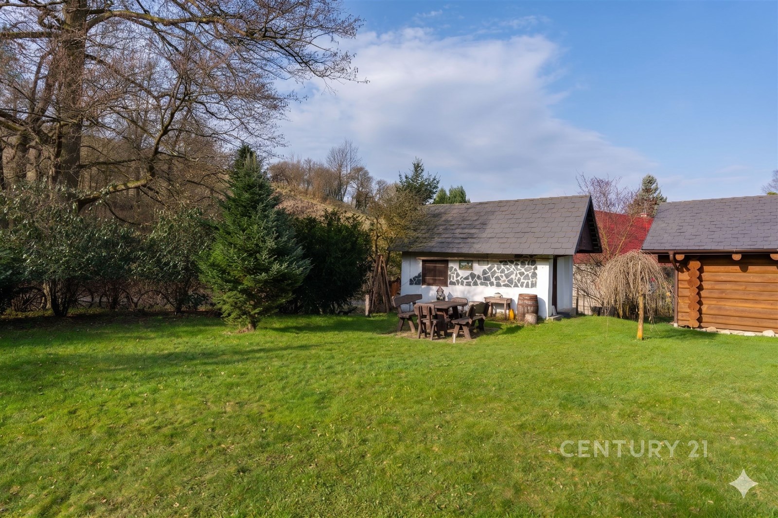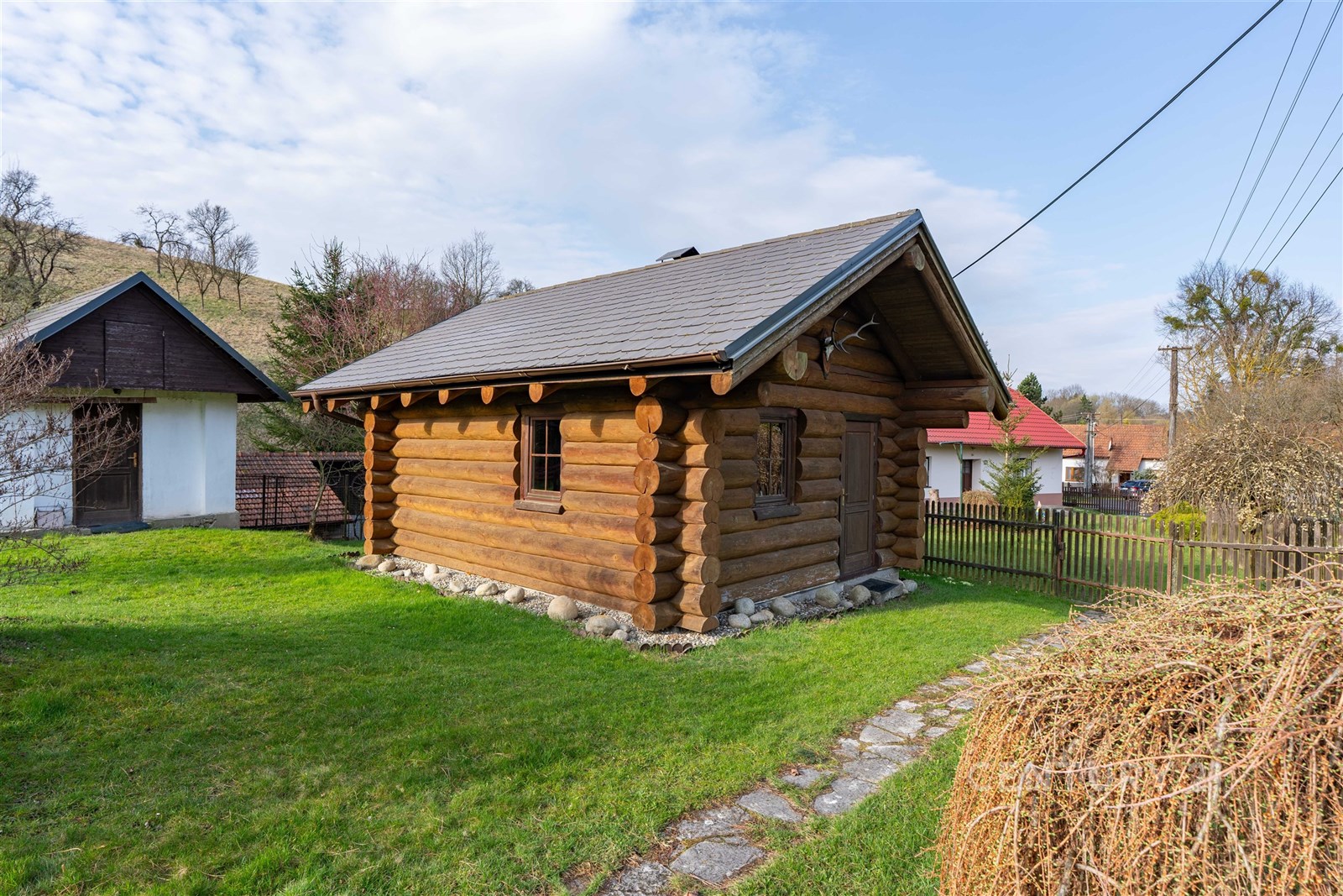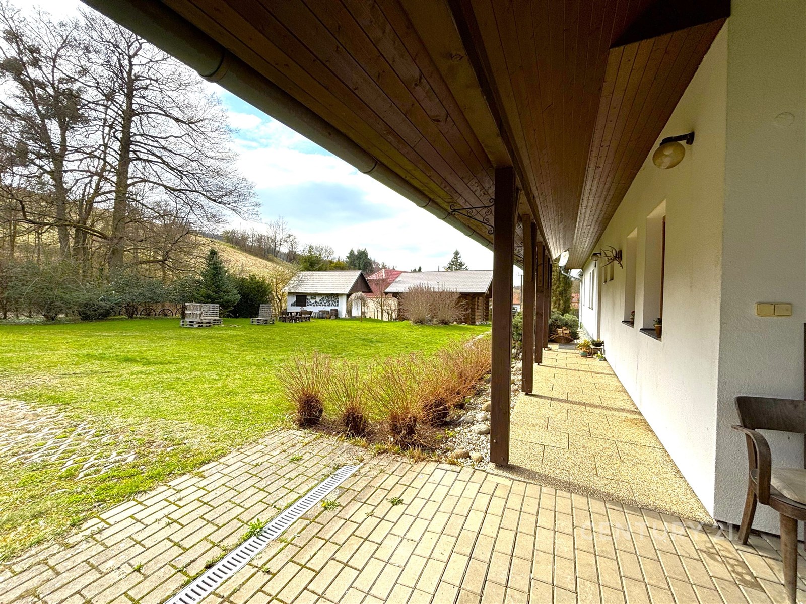 Kromě hlavní budovy nabízí areál další unikátní prvky. Součástí prodeje je stylový srub se saunou, ideální pro relaxaci po náročném dni, a také podsklepená dílna. Venkovní vyžití doplňuje terasa o rozloze 14 m², zatímco o bezpečné parkování je postaráno díky krytému stání i dostatečnému prostoru pro další vozy na pozemku. Celý objekt je chráněn dálkovým bezpečnostním systémem.