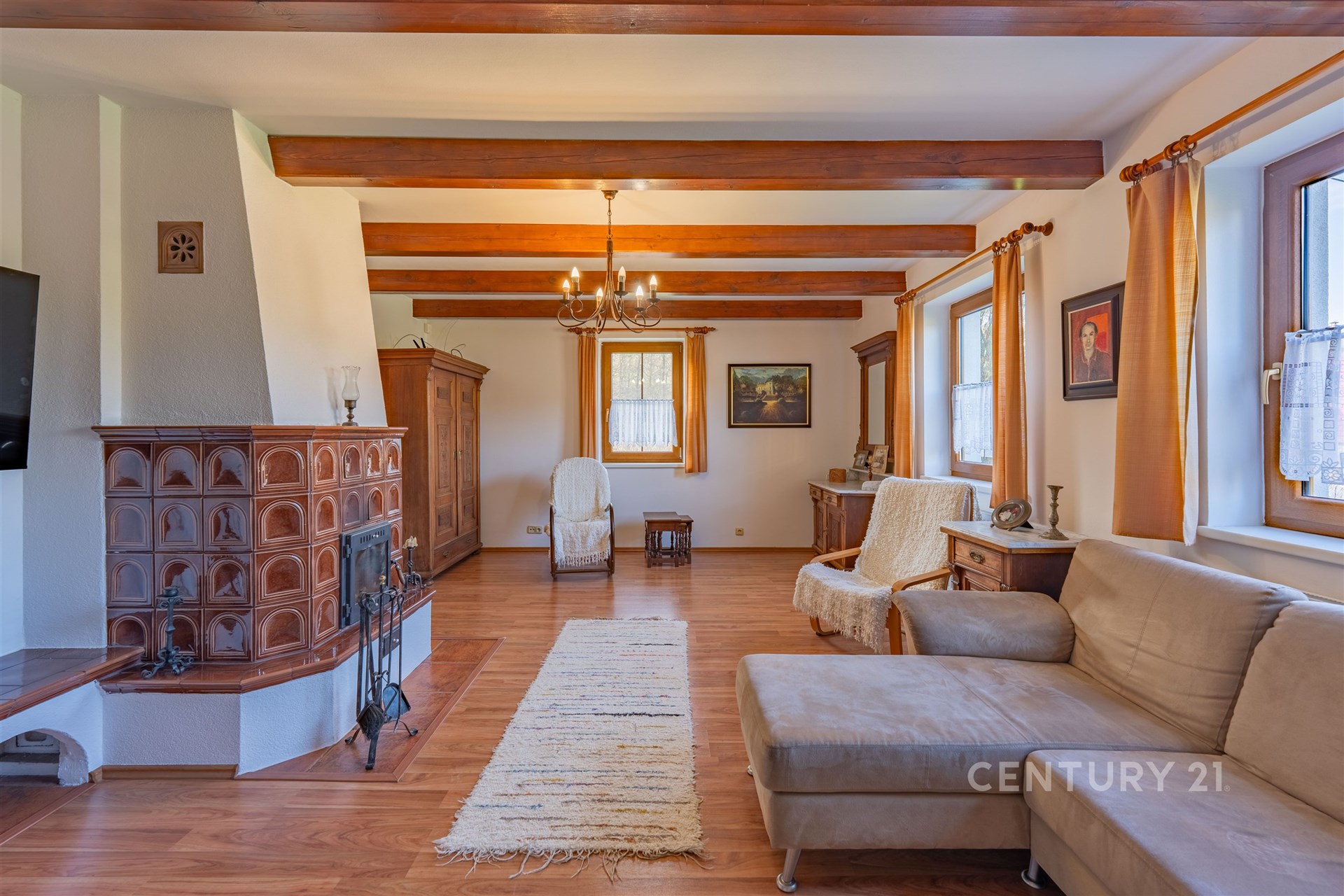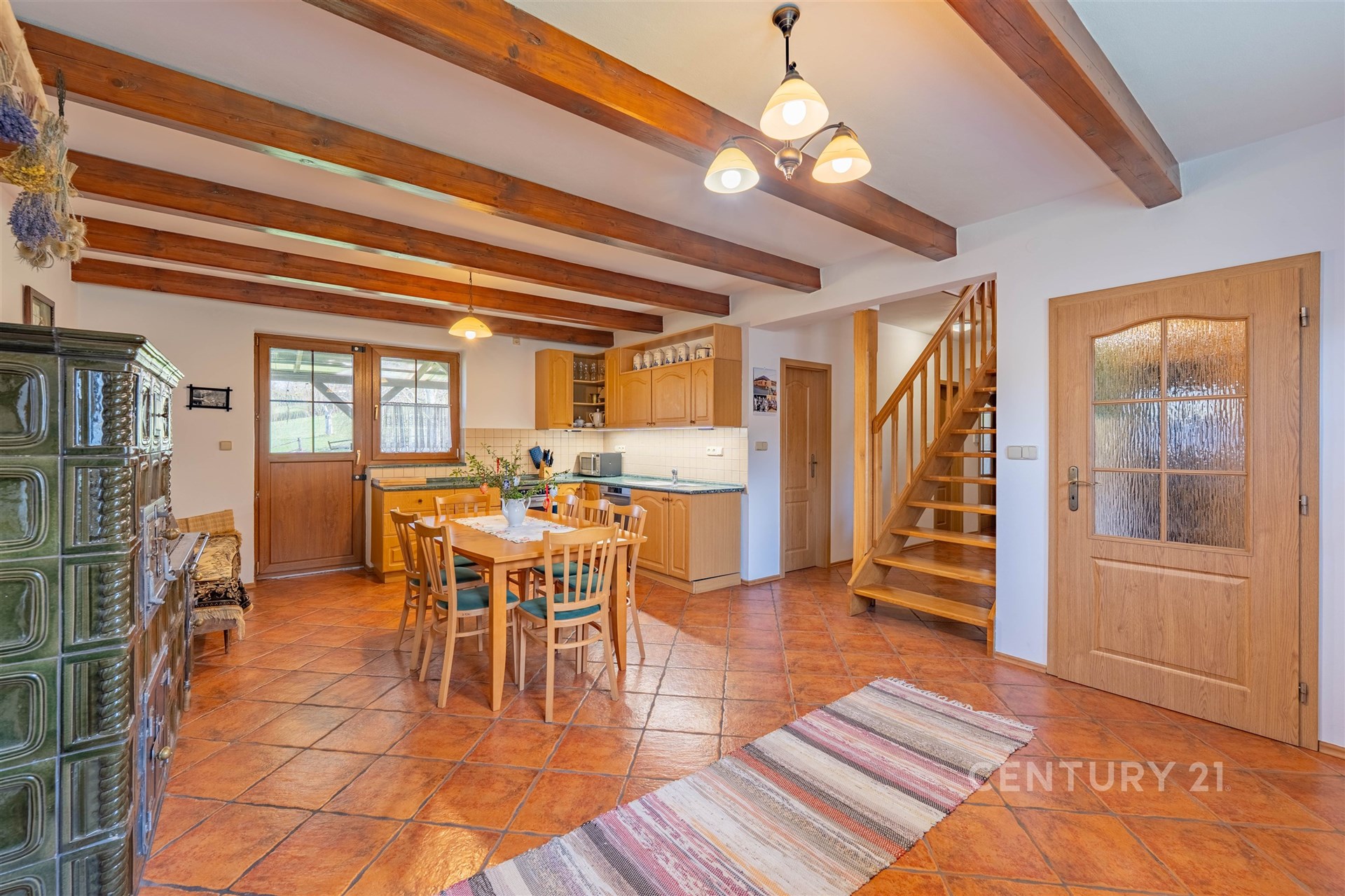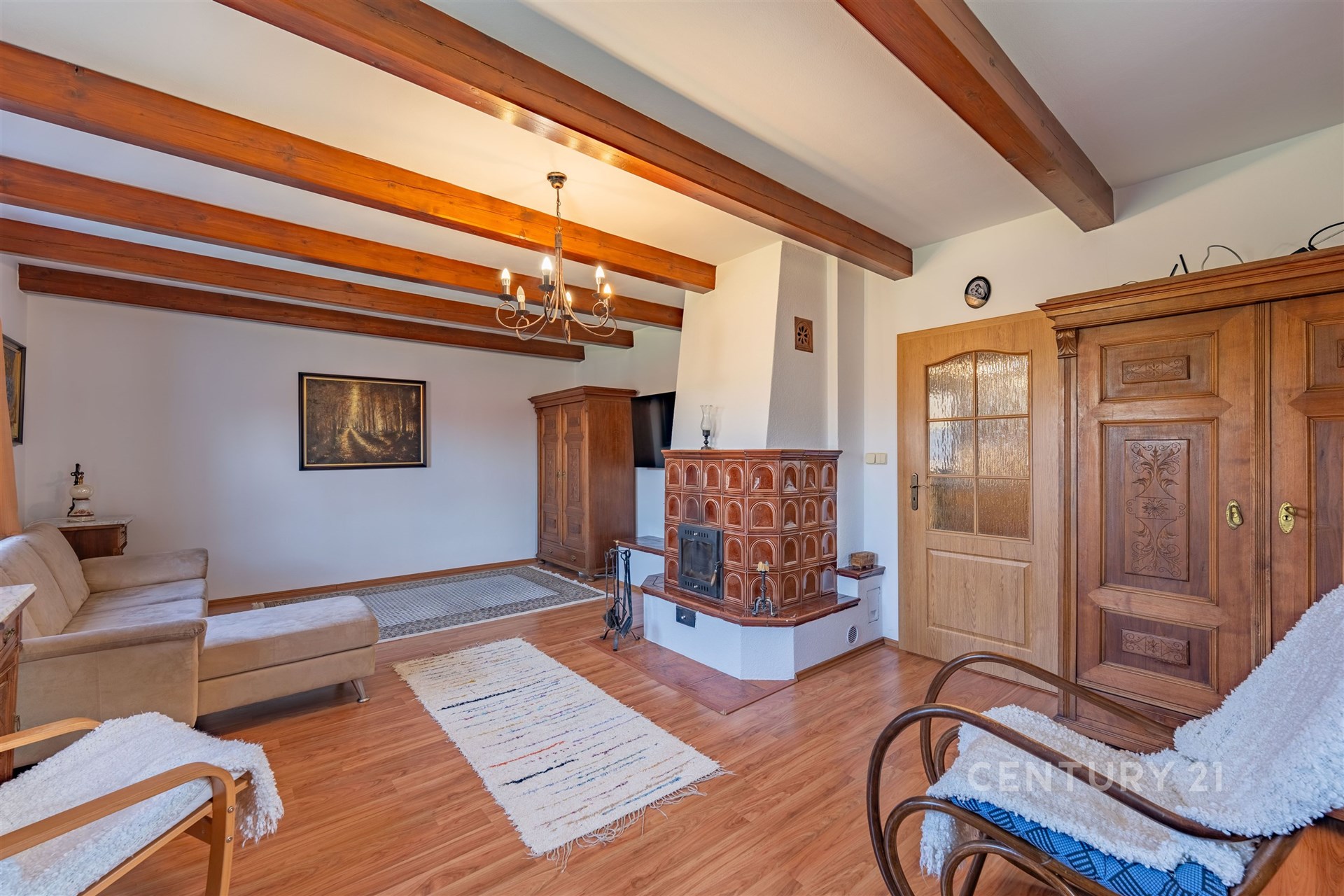Samotný dům je promyšlenou dvoupodlažní stavbou s celkovou užitkovou plochou 273 m², přičemž čistě obytná část činí 223 m². Interiér je vybaven moderními spotřebiči, dům se nabízí částečně zařízený, což umožňuje okamžité nastěhování bez nutnosti dalších velkých investic. Atmosféru rodinné pohody a útulna dokreslují dvoje kachlová kamna, která jsou stylovým doplňkem moderního technologického zázemí. O tepelný komfort a energetickou efektivitu se totiž stará špičkové tepelné čerpadlo Mitsubishi typu vzduch–voda.