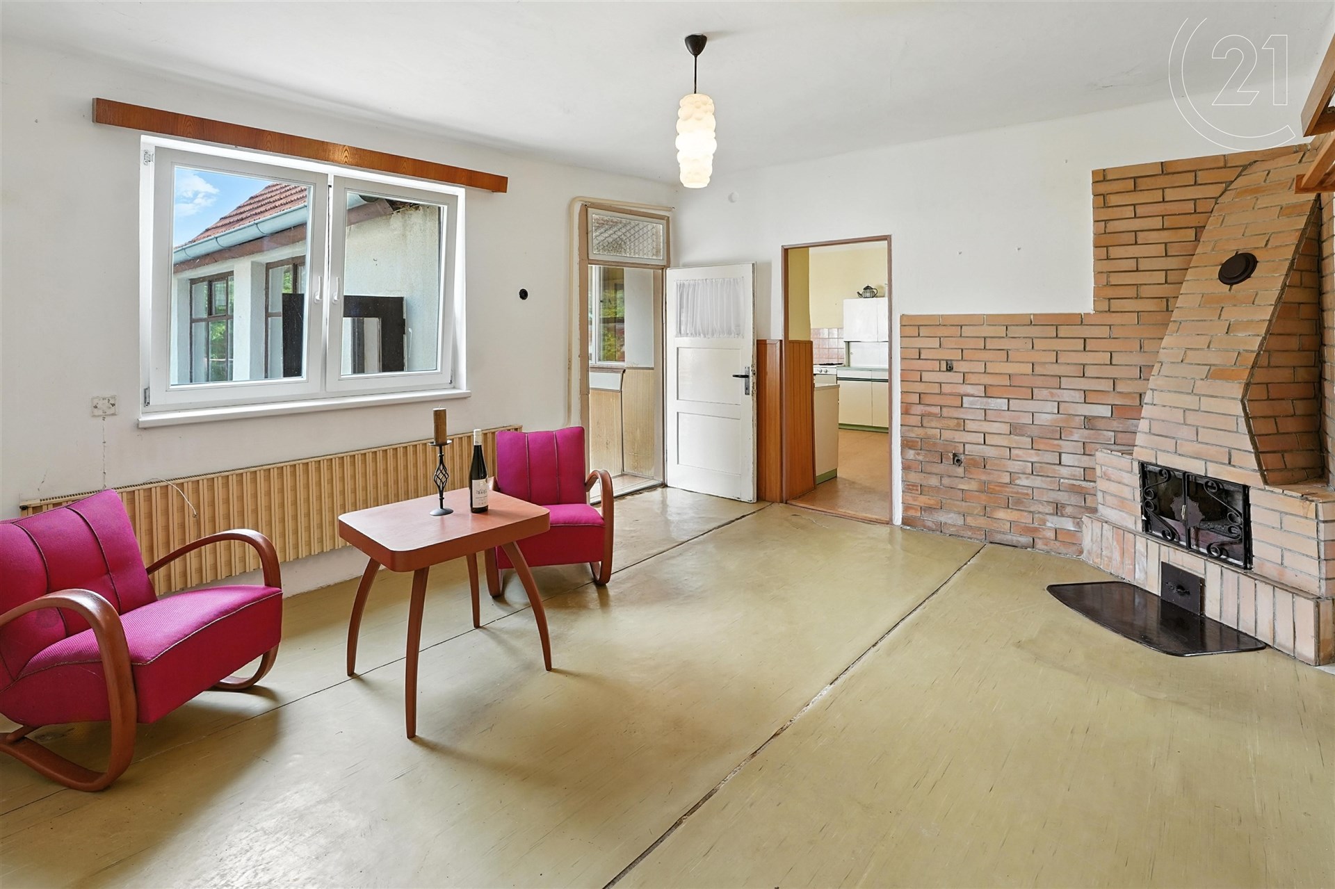 Dispozice 4+1 s podlahovou plochou 132 m² zaujme společenskou místností s krbem, ze které se