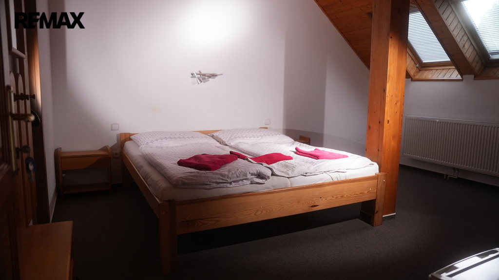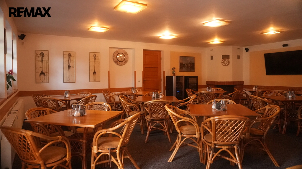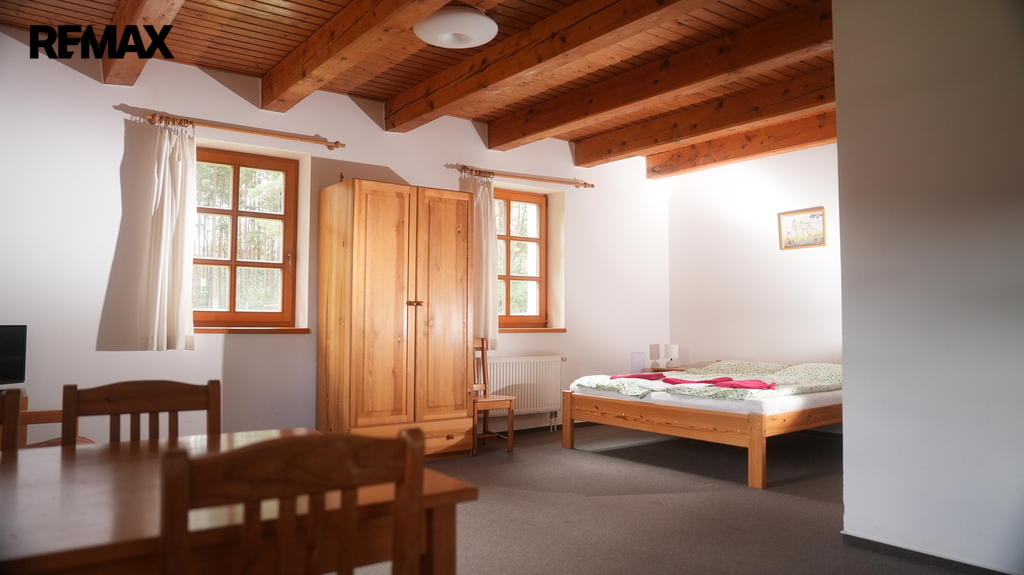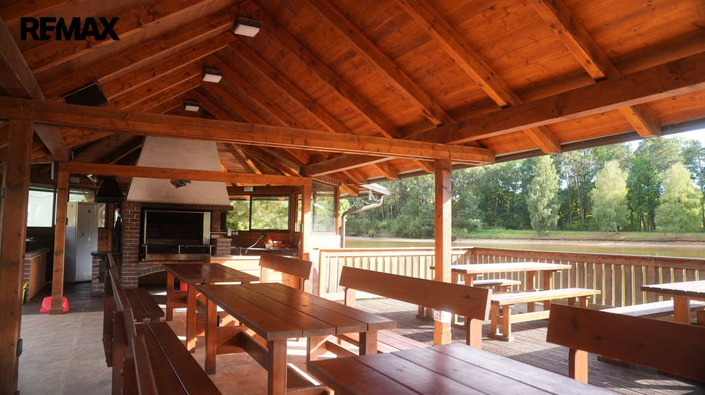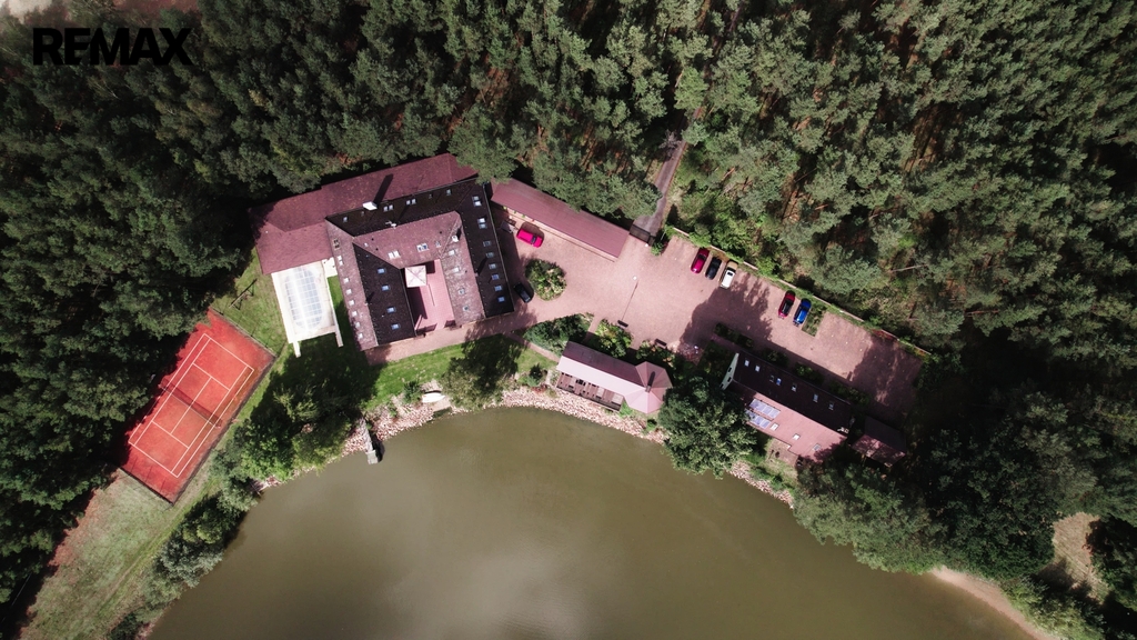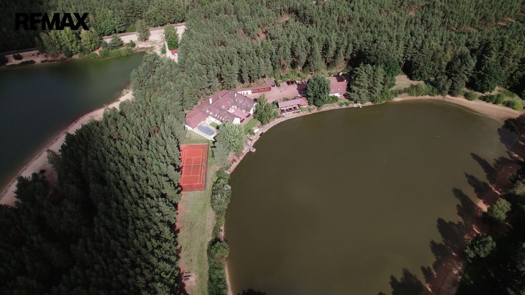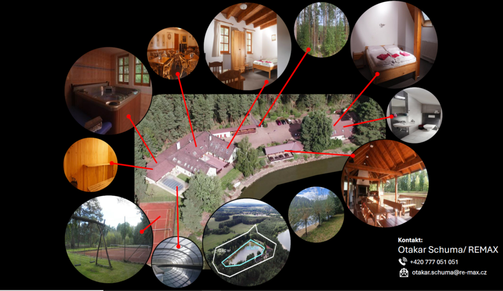 Hlavní budova (o užitné ploše cca 550 m2) se 17 pokoji s ubytovací kapacitou 44 lůžek + 17 přistýlek. Vedlejší budova (o užitné ploše cca 280 m2) se 4 pokoji s ubytovací kapacitou 12 lůžek a ubytováním pro rodinu provozovatele/ správce areálu vč. garáže na 2 auta. Restaurace pro 44 osob s jídelnou a kuchyní, zastřešený venkovní gril a posezení až pro 100 hostů vč. terasy u jezera, tenisový kurt (antuka), bazén se slanou vodou, vířivka, sauna, masáže, rybolov a další sportovní vyžití (kolárna, půjčovna rybářského vybavení, venkovní ping pong, dětské hřiště, udržovaná pláž).