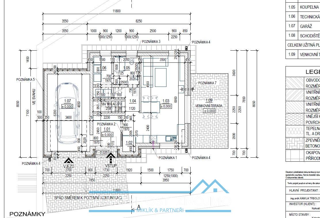 b.) 5+kk, jedna koupelna, technická místnost, garáž