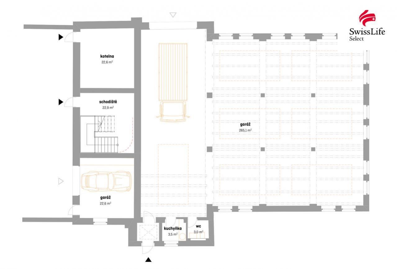 Hlavní budovu tvoří vytápěná hala o pěti nadzemních podlažích, stojící na oploceném pozemku o rozloze cca 1 800 m. Plocha umožňuje parkování pro minimálně 15 vozidel a pohodlný pohyb nákladní techniky.