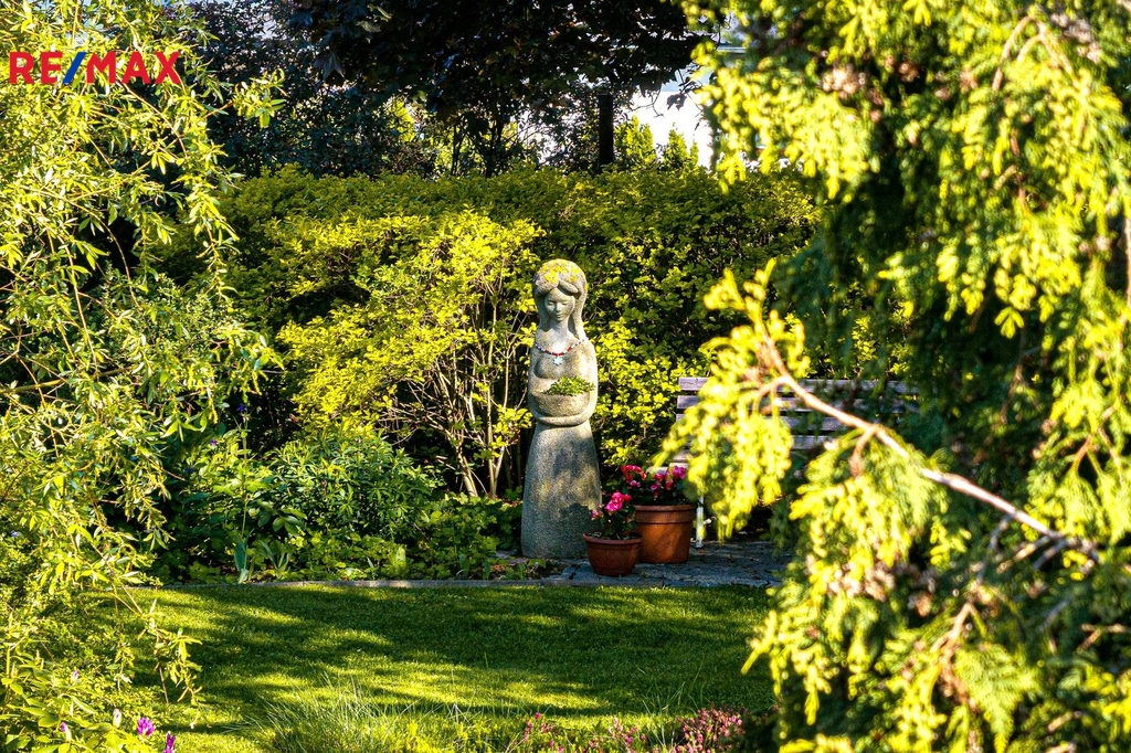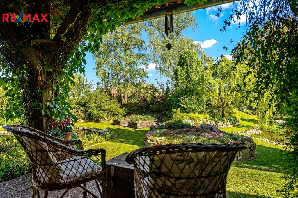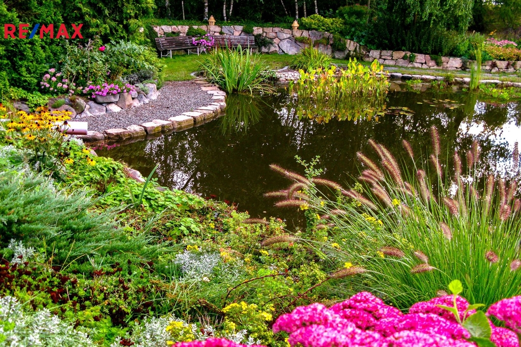 Samotná dechberoucí okrasná zahrada se vzrostlými stromy a dvěma jezírky, poskytuje maximální soukromí a vybízí k odpočinku či k setkávání s rodinou a přáteli. Najdete zde i užitnou část pro pěstování vlastní zeleniny. A jste-li milovníky přírody, jistě vás potěší množství živočichů, kteří zde našli své útočiště. V jarních a letních měsících se můžete zaposlouchat do ptačího zpěvu či milostného kuňkání žab. Pro údržbu zahrady vám ráda doporučím zahradníka.