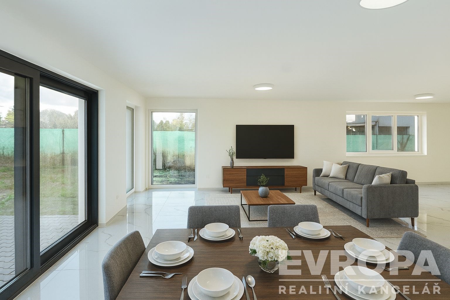 • prostorný obývací pokoj s velkým prostorem pro jídelní a obývací část, s přípravou na kuchyň a vstupem na zahradu