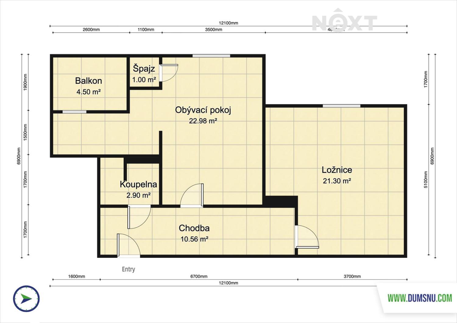 - Užitná plocha: 61 m²