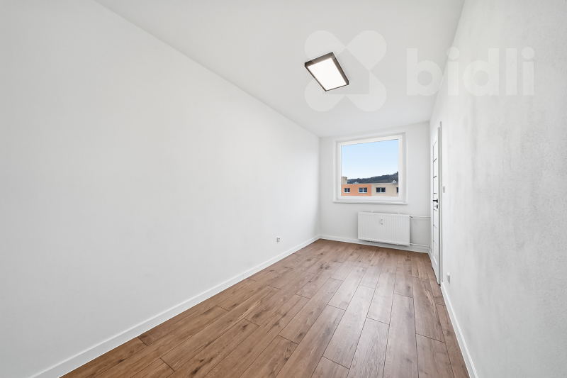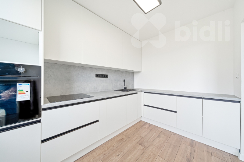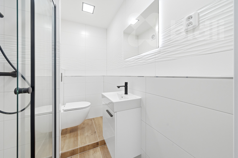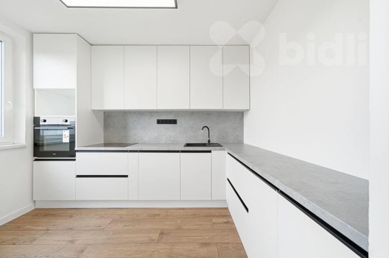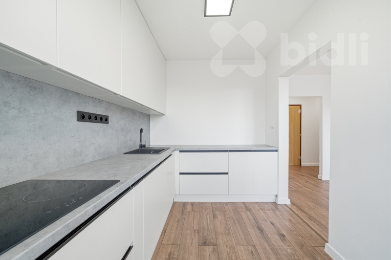 V rámci úprav byly realizovány nové rozvody elektřiny, kompletně nová koupelna i kuchyňská linka vyrobená na míru. V celém bytě jsou položeny vinylové podlahy, které podtrhují jednotný a elegantní charakter interiéru. Stropy byly sníženy pomocí sádrokartonových podhledů, čímž vzniklo příjemné a moderní osvětlení prostoru. Byt po rekonstrukci čeká na prvního majitele, je čistý, sladěný a připravený k okamžitému užívání.