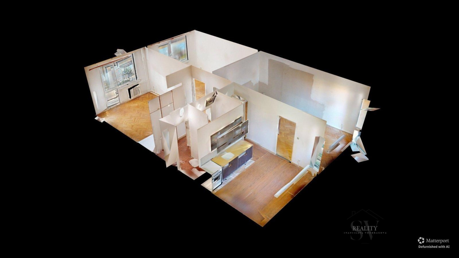 Byt má původní jádro a rozvody, což je zároveň výzva i příležitost – konečnou podobu určíte vy. Pro lepší představu jsme připravili i vizualizace možného řešení interiéru.