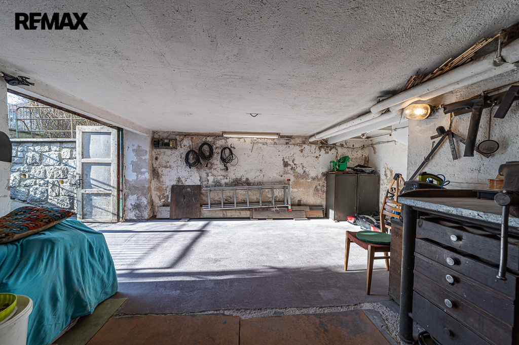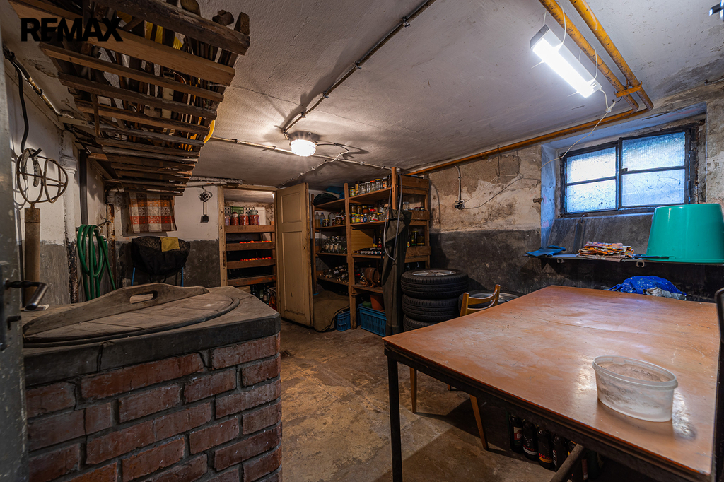 • Sklep: Kompletně podsklepený dům nabízí nejen garáž pro menší auto, ale i dílnu, prádelnu a skladovací prostory. Garáž je přístupná z ulice Lidická. Sklepní zdi jsou z kamene a podlahy z páleného betonu, což zajišťuje jejich dlouhou životnost a odolnost.