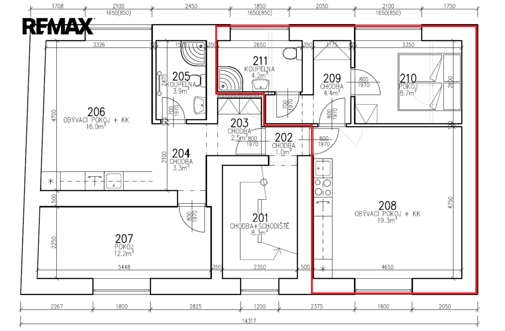 | Dispozice/podlahová plocha: | 2+kk/46 m² |