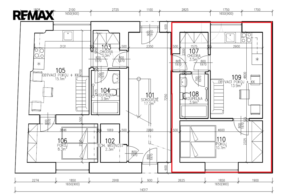| Dispozice/podlahová plocha: | 2+kk/31 m² |