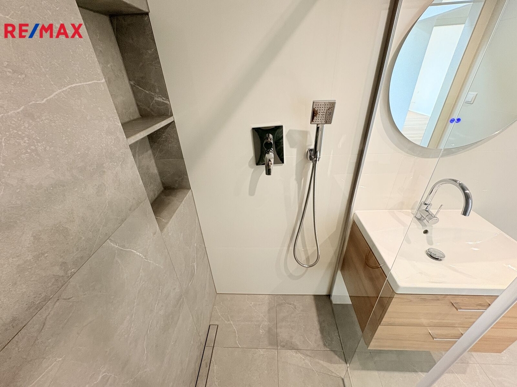 Součástí rekonstrukce byla výměna všech rozvodů elektřiny i vody, nové omítky, vinylové podlahy, interiérové dveře i bezpečnostní vstupní dveře. Byla instalována nová kuchyňská linka s vestavnými spotřebiči – indukční varná deska, digestoř, trouba, myčka a lednice. Koupelna je rovněž kompletně nová, laděná v moderním a čistém stylu. Dispozice bytu je ideální pro dvě osoby – samostatná kuchyně, obývací pokoj a ložnice s přímým vstupem na balkon poskytují dostatek prostoru i soukromí.