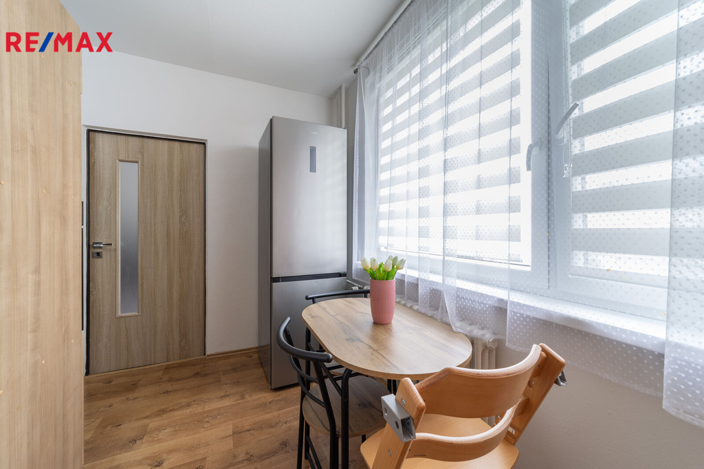 Uvnitř vás přivítá zděné jádro, modernizovaná koupelna s velkým sprchovým koutem, oddělená toaleta, novější kuchyňská linka se spotřebiči a plastová okna i interiérové dveře, které dodávají bytu svěží a čistý vzhled.