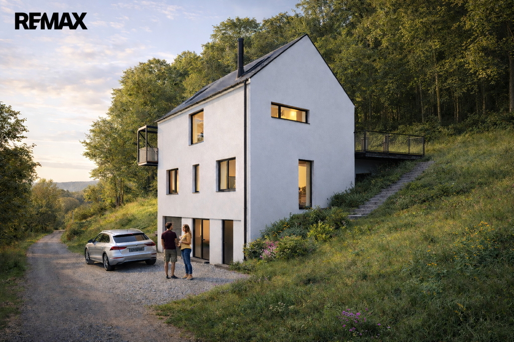 Navržený dům citlivě reaguje na terén – obytný prostor v podkroví přirozeně navazuje na svažitý pozemek, což umožňuje přímý vstup na zahradu a dále do lesa. Ideální řešení pro ty, kteří chtějí žít v kontaktu s přírodou.