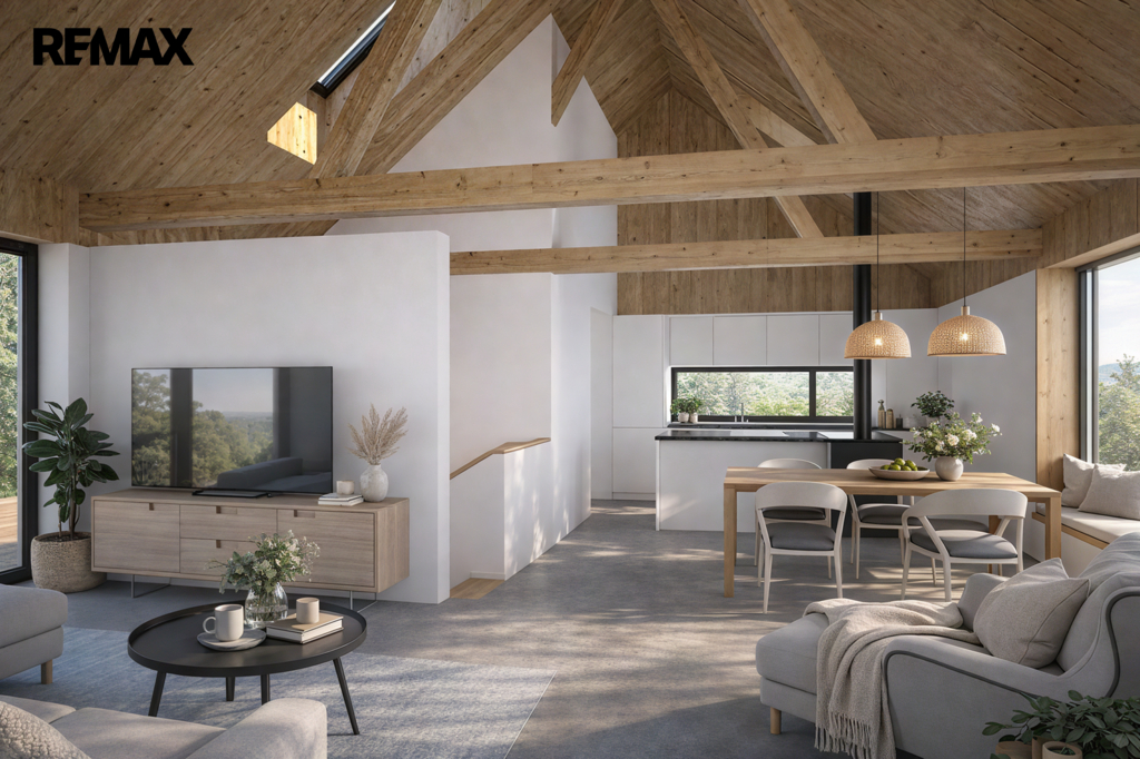 • obytná část situována do podkroví s přímým vstupem na pozemek a do přilehlého lesa