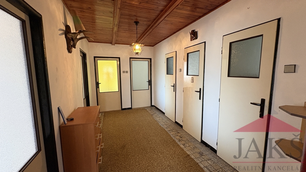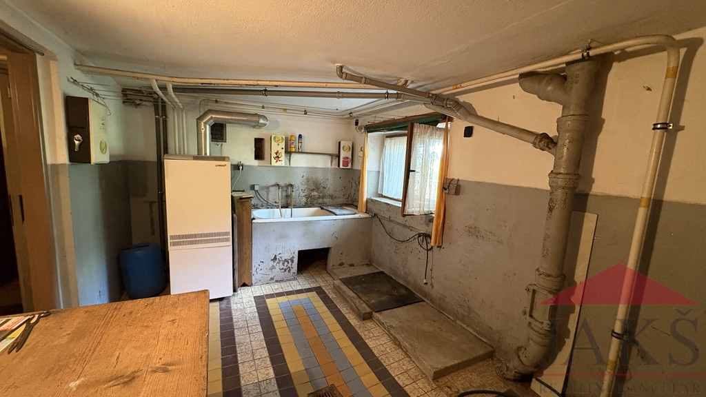 Popis: podsklepeno: suterén (100 m2): garáž s dílnou (ponk), chodba se schodištěm, sam. WC, prádelna (plynový kotel, vana), kotelna (kotel na T.P. a záložní elektrokotel) s uhelnou, sklep (zeleninový); suterénní byt 1+1 (36,8 m2): předsíň (vest, skříň), kuchyň (kuch. linka se sporákem), koupelna (sprch. kout, umyv., WC) a ložnice;