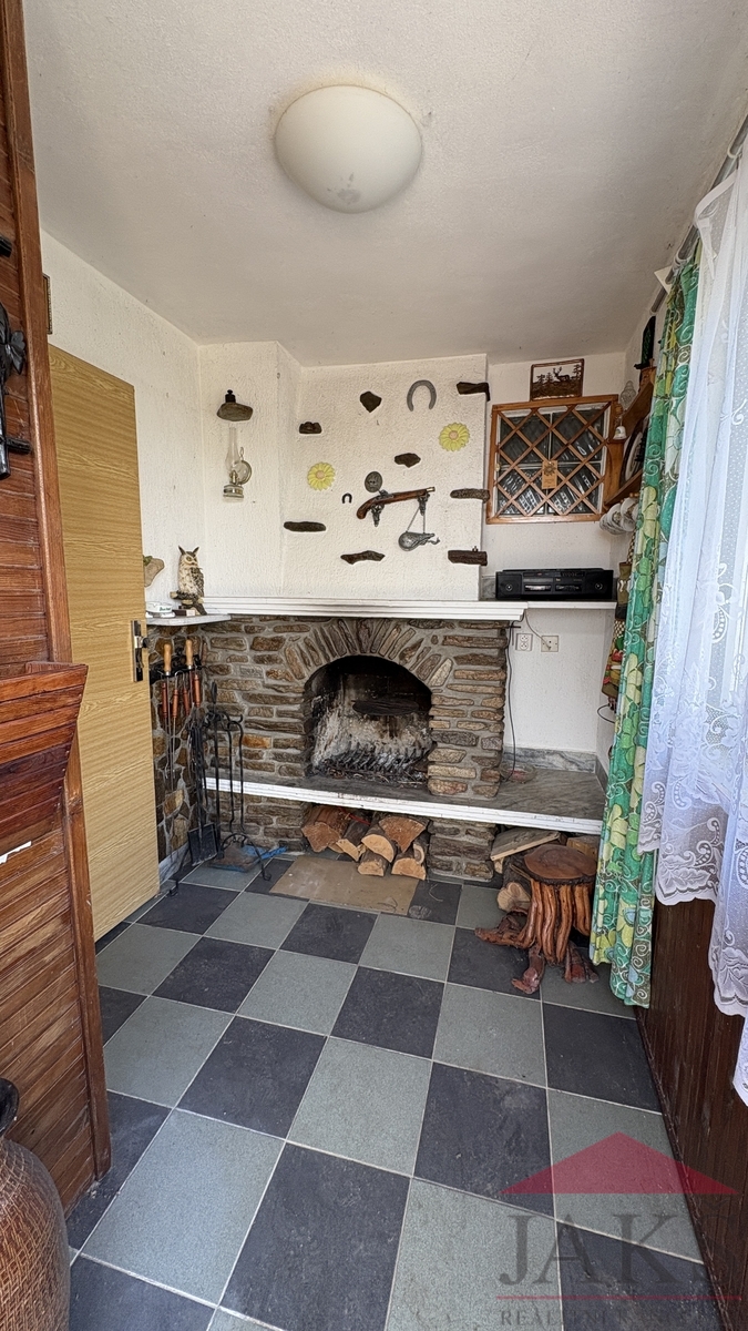 Vedlejší stavby: zděná stavba vejminku (nedokončená koupelna s WC, kuchyňka, pokoj s krbem, techn. místnost) s velkou garáží a půdou, skleník, udírna, kotec pro psy, kurníky...