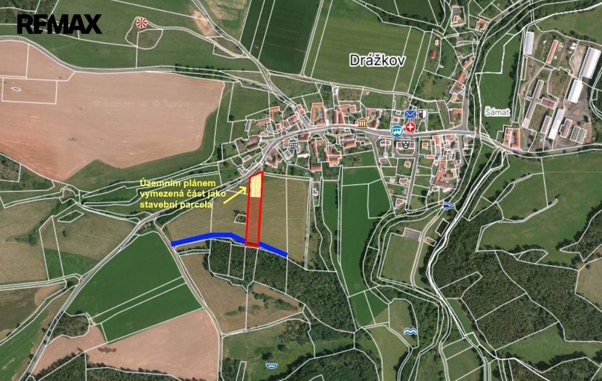 Nabízíme velký pozemek o celkové výměře 4 025 m² s parcelním číslem 1610 v klidné a malebné obci Drážkov, která je součástí obce Svatý Jan, jen necelé 2 km od Kamýku nad Vltavou. Tento pozemek může být i výhodnou investiční příležitostí — z celkové výměry je 1 000 m² v severní části, teda té která přímo navazuje na stávající zástavbu, v územním plánu určena k výstavbě pro osobní bydlení nebo rekreaci.