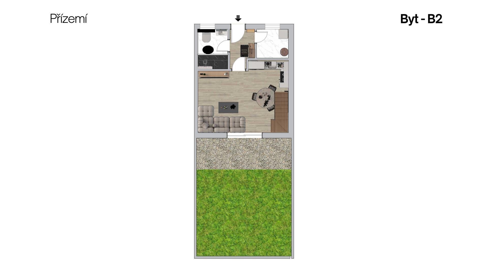 Mezonetový byt 2+kk s předzahrádkou a parkováním v klidné části Svitav
