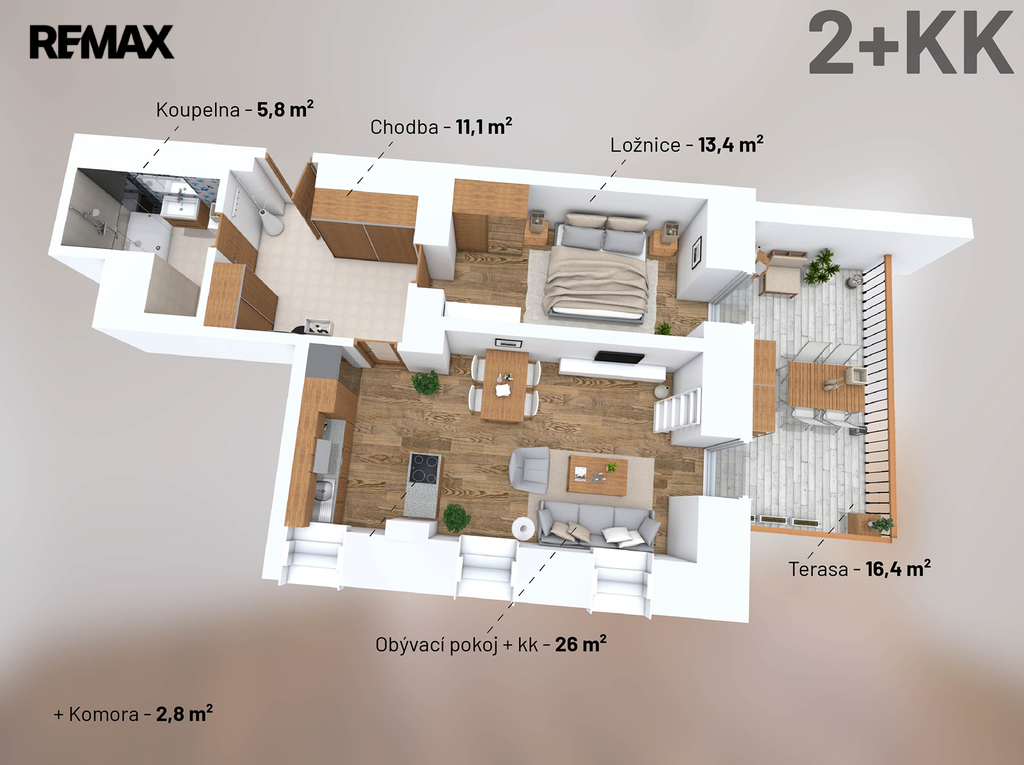 | Dispozice/podlahová plocha: | 2+kk/75 m² |