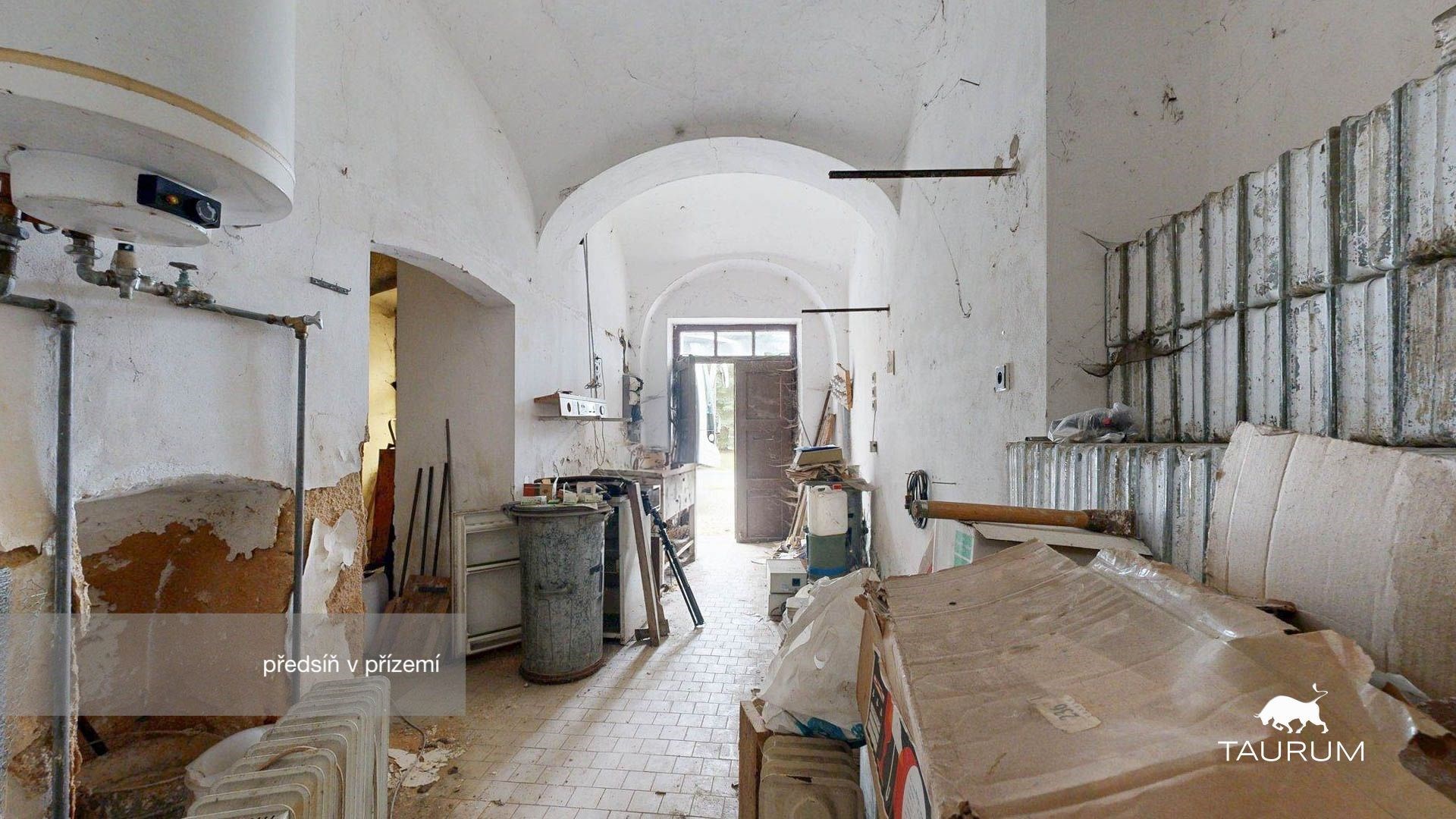 Přízemí domu o výměře 114 m² sloužilo v minulosti jako bar se sociálním zařízením. Sloup a přilehlé klenby jsou zde využity jako předělující prvek mezi jednotlivými zónami prostor. Nachází se zde ještě různý materiál, nicméně jeho vyklizení je vlastník nemovitosti připraven po domluvě případně zajistit.