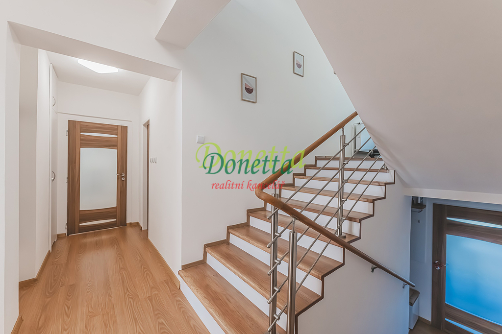 Tento rodinný dům nabízí rozsáhlé vnitřní prostory s užitnou plochou téměř 240 m². Vše je navrženo a vybaveno tak, aby byl zajištěn maximální komfort a pohodlí pro budoucí majitele. K domu náleží udržovaná západně orientovaná zahrada s dostatkem prostoru pro relaxaci či dětské hry. Na zahradě se nachází pergola s vířivkou, uzavíratelný altán s krbem pro pořádání rodinných setkání a kůlna na uskladnění nářadí. Větší část zahrady je zatravněná, zatímco v zadní části najdete užitkovou zahradu se záhony pro vlastní pěstování zeleniny či jiných plodin.