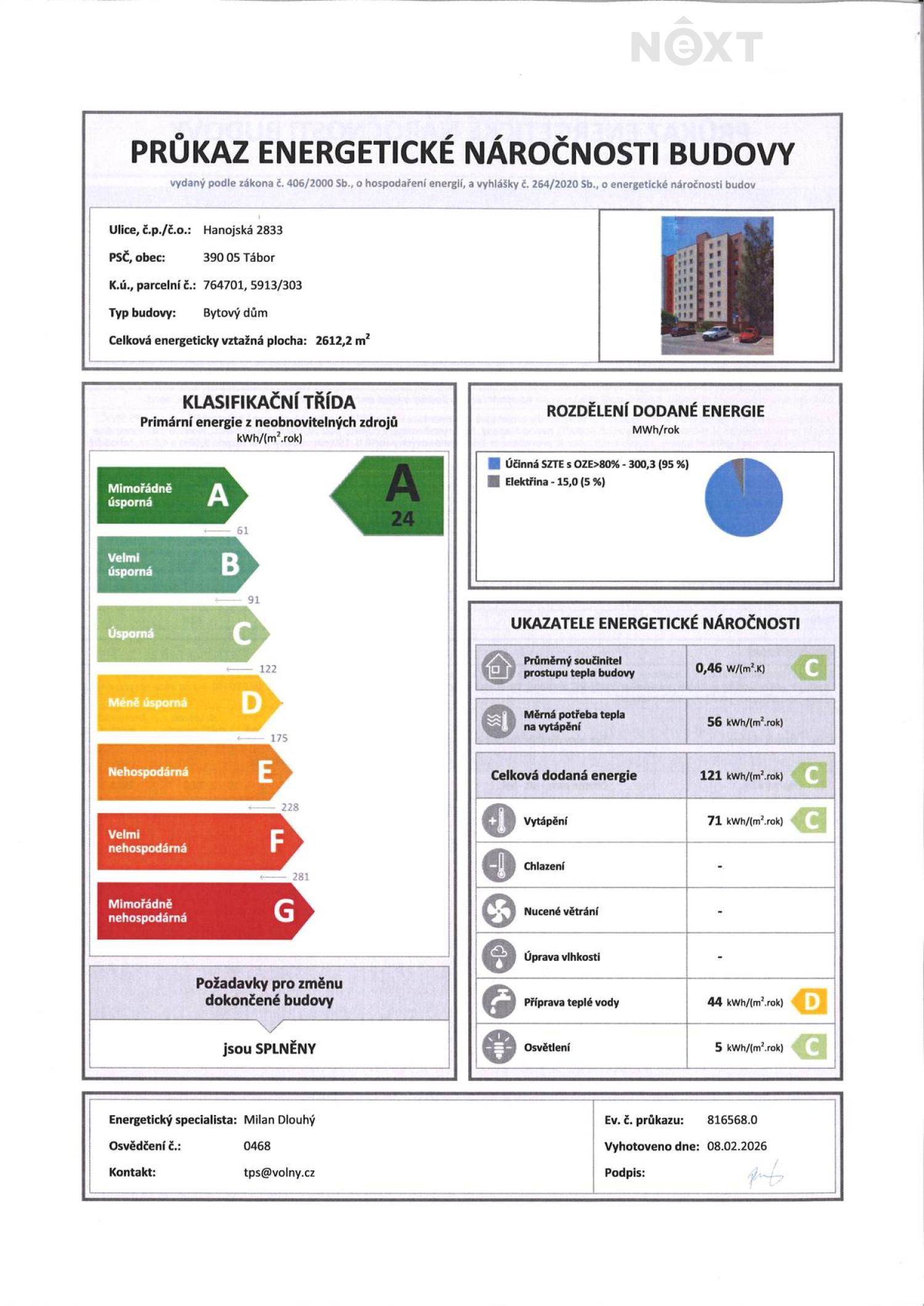 - Energetický ukazatel podle vyhlášky: č. 78/2013 Sb.