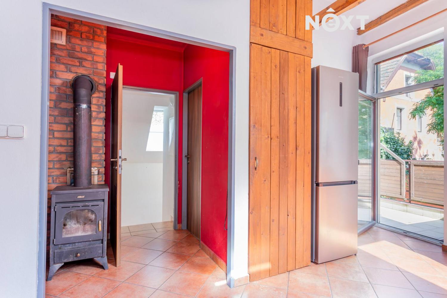 Dům je rozdělen na dvě samostatné bytové jednotky o dispozici 2+kk, každou s vlastní kuchyní a koupelnou, což zajišťuje plnou nezávislost jednotlivých pater. Přízemní byt působí velmi útulně a příjemně, jeho dominantou je obývací prostor s krbovými kamny, které dodávají interiéru teplo domova a atmosféru ideální pro chladnější večery. V celém domě je instalováno podlahové vytápění, které přináší vysoký komfort a rovnoměrné rozložení tepla.