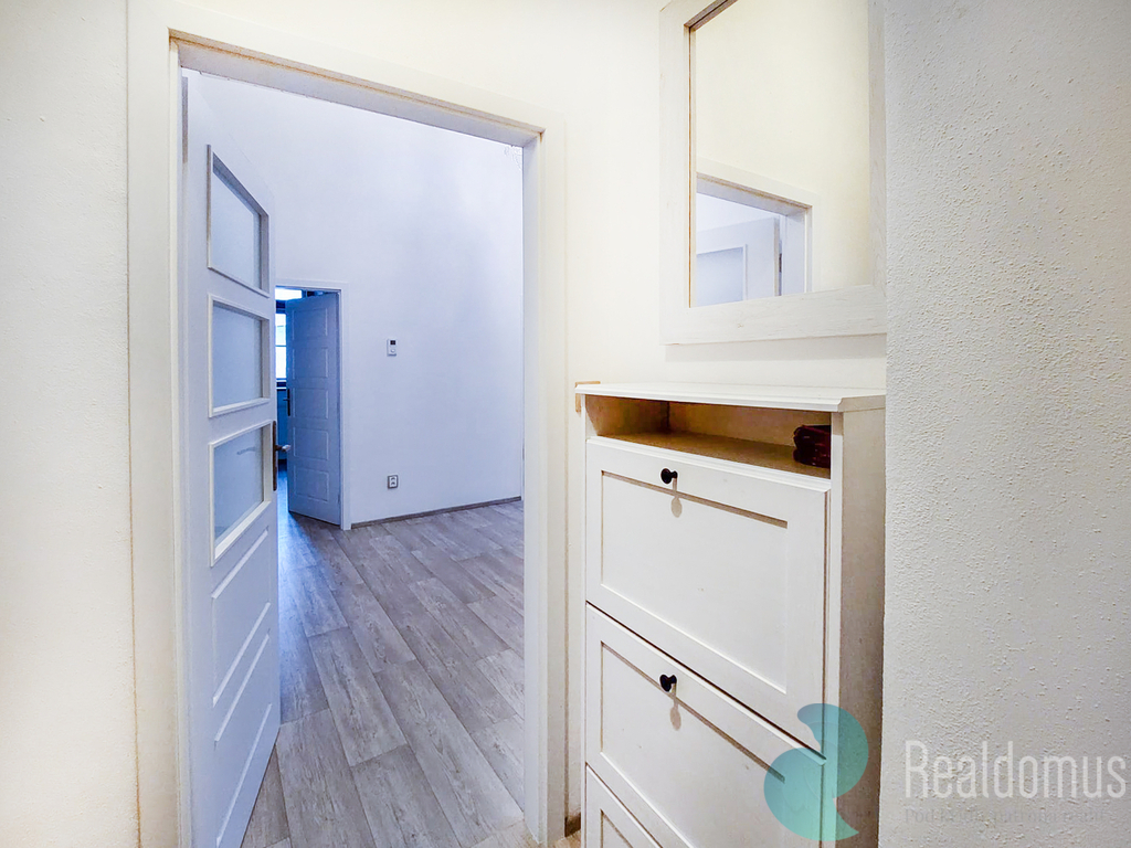 Byt vás přivítá vstupní chodbou, ze které vstoupíte do světlého obývacího pokoje s kuchyňským koutem – ideálního prostoru pro každodenní život i setkávání s přáteli. Dále zde najdete ložnici a další pokoj, který může sloužit jako dětský pokoj, pracovna nebo pokoj pro hosty.