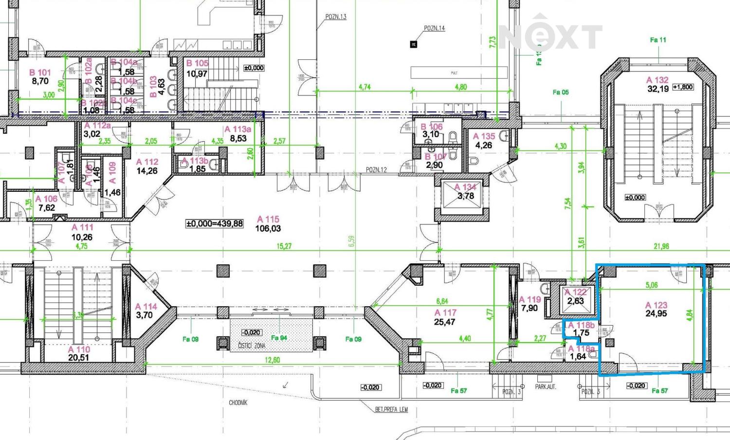 K dispozici je zde tento prostor: kancelář o velikosti cca 27 m2 v přízemí s vlastním vstupem z ulice Vančurova (vedle hlavního vchodu do objektu).