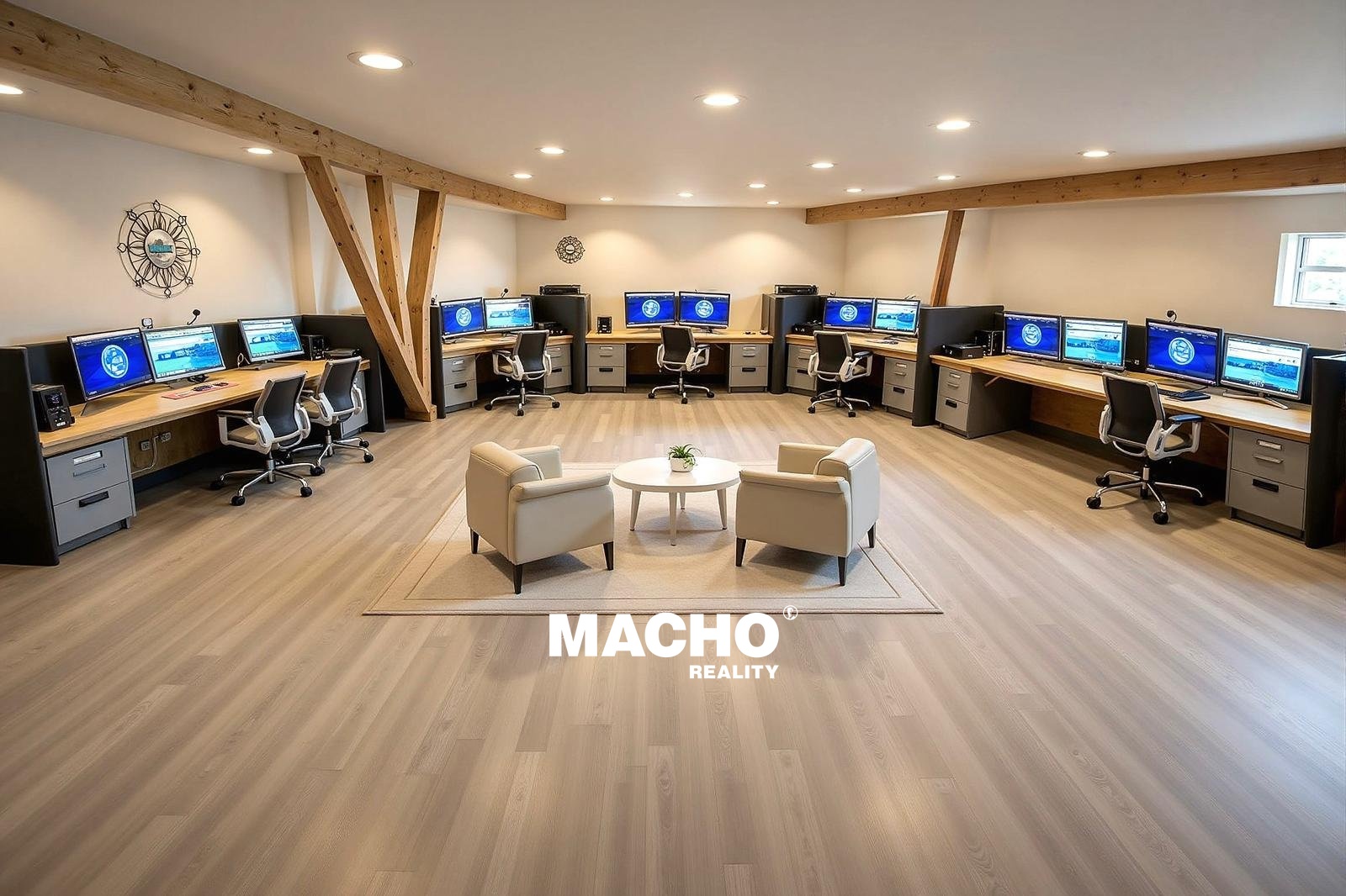 - Plocha kanceláří: 195 m²